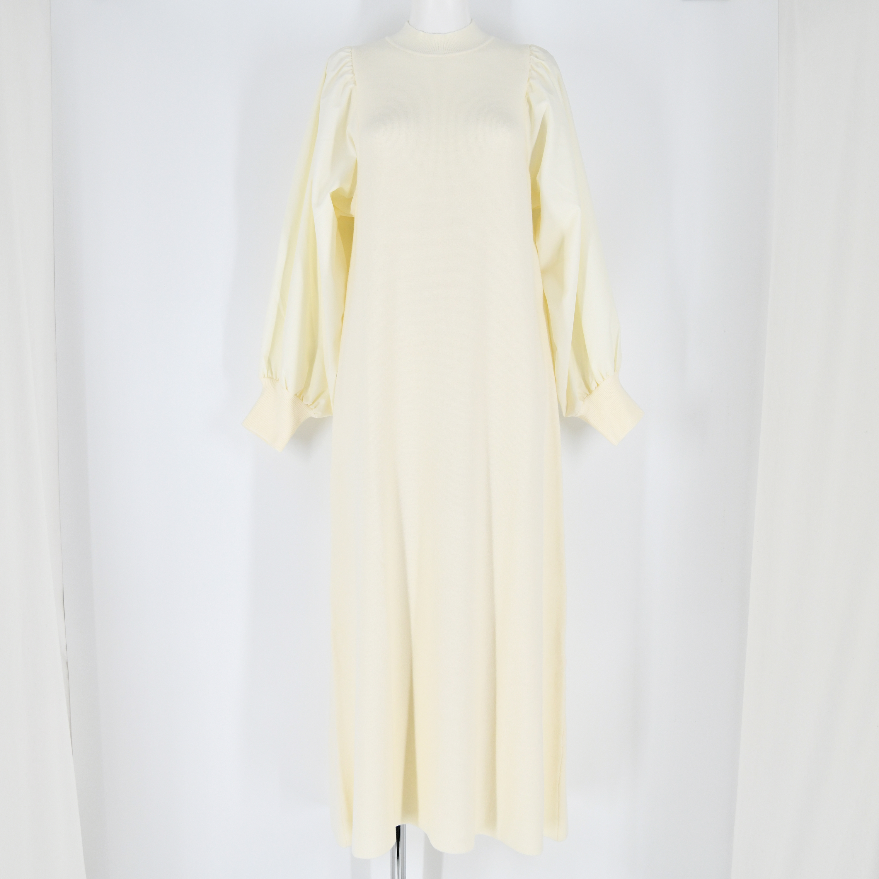 ・ハイネックのロングワンピースは上品で大人っぽくも袖のボリューム感が可愛らしい印象を与えてくれます。