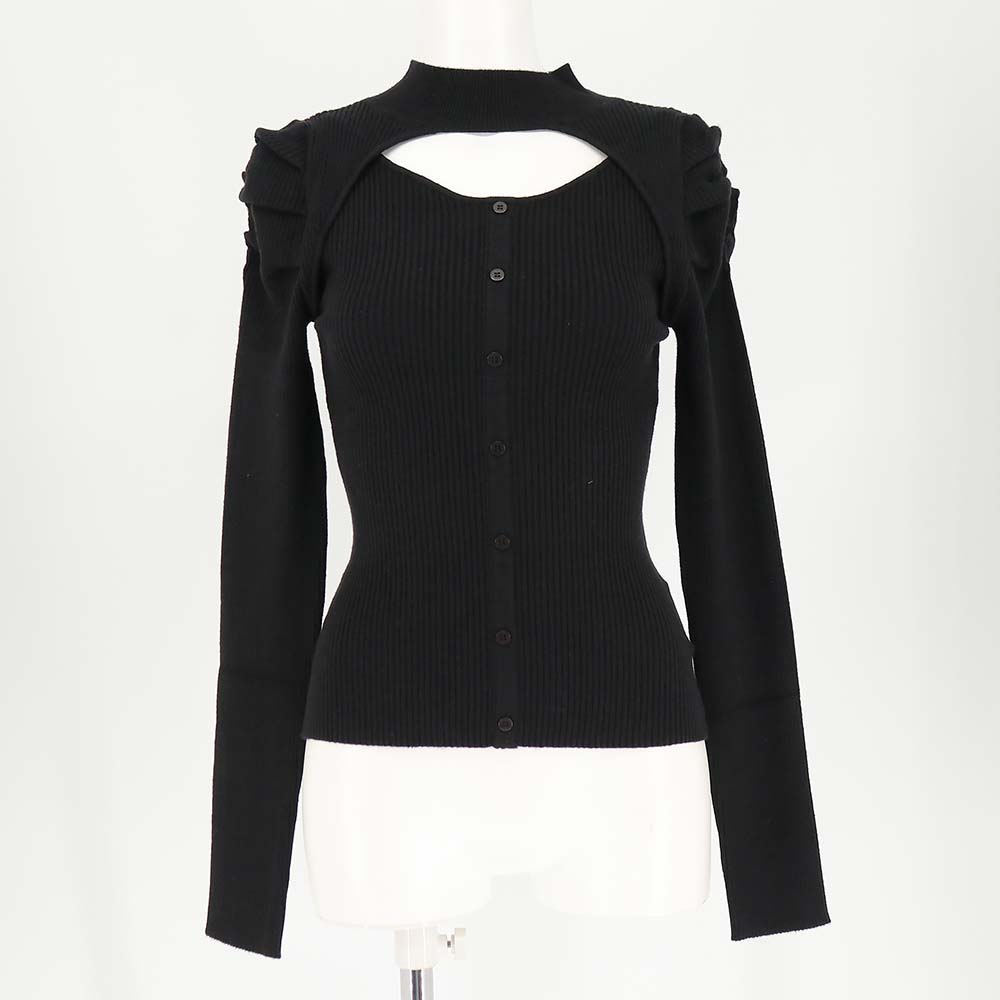 デコルテ肌見せデザインが今季らしい旬なニットトップス。