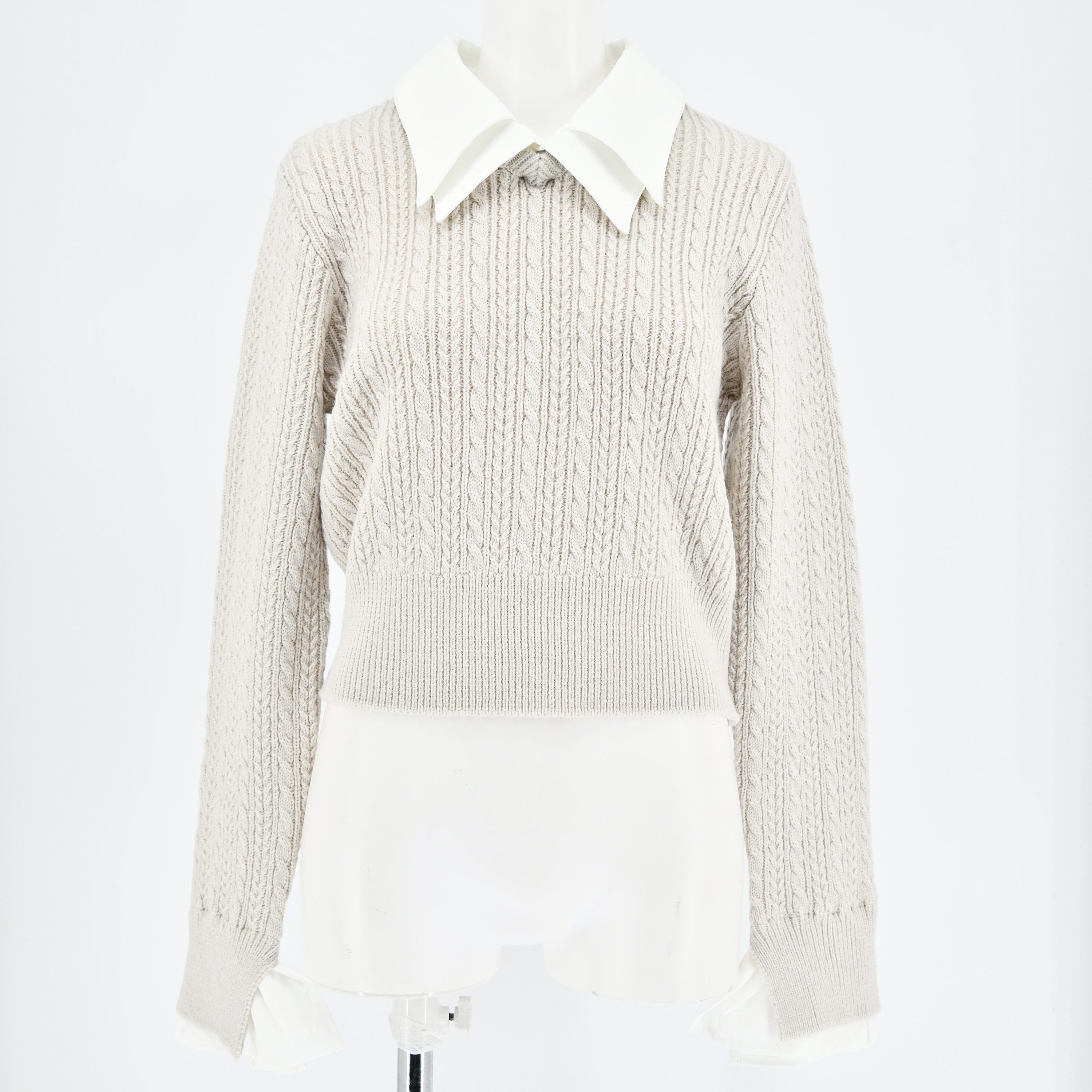 編み柄の表情もあり1枚で主役になれるニットアイテムです。