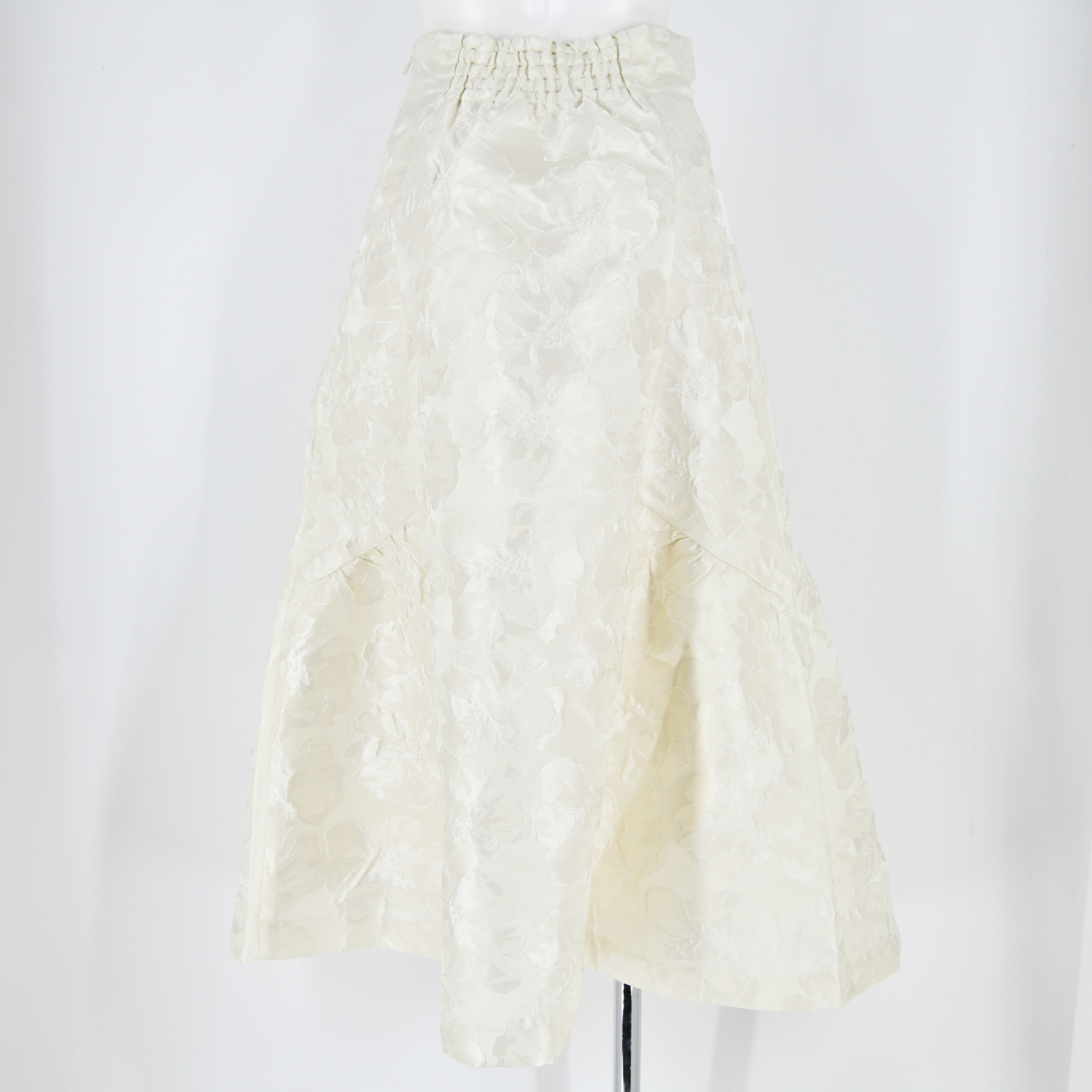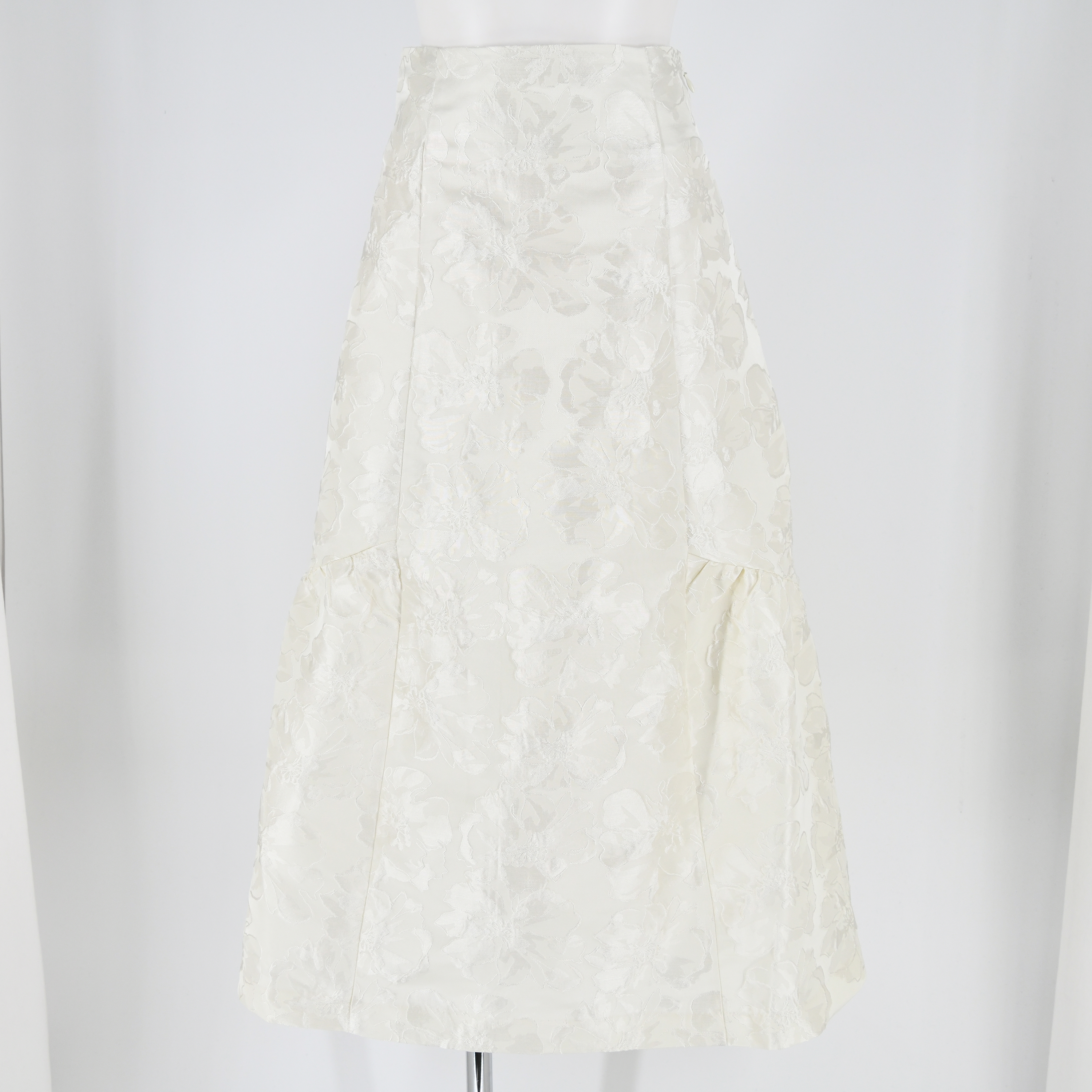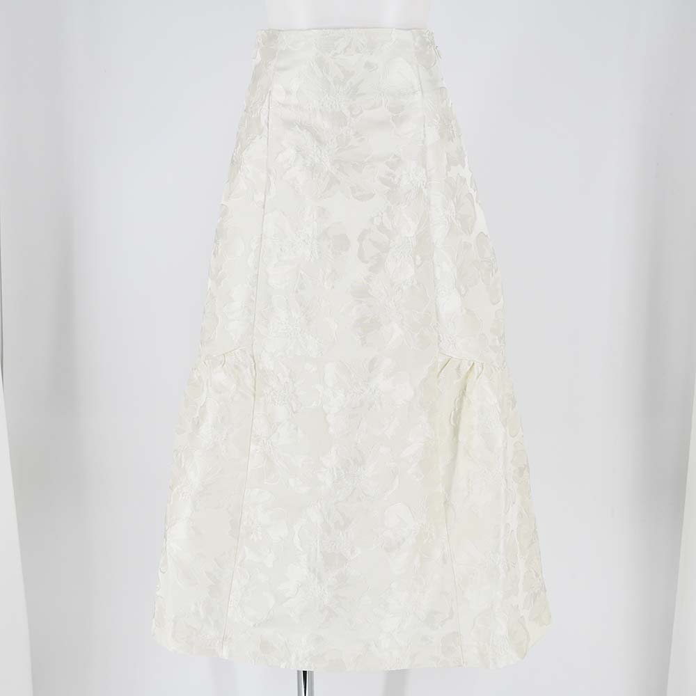 ふっくらと立体感のある大柄がコーディネートを華やかにするスカート。