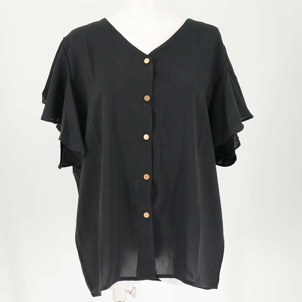 ボリューミー袖フリルVネックブラウス