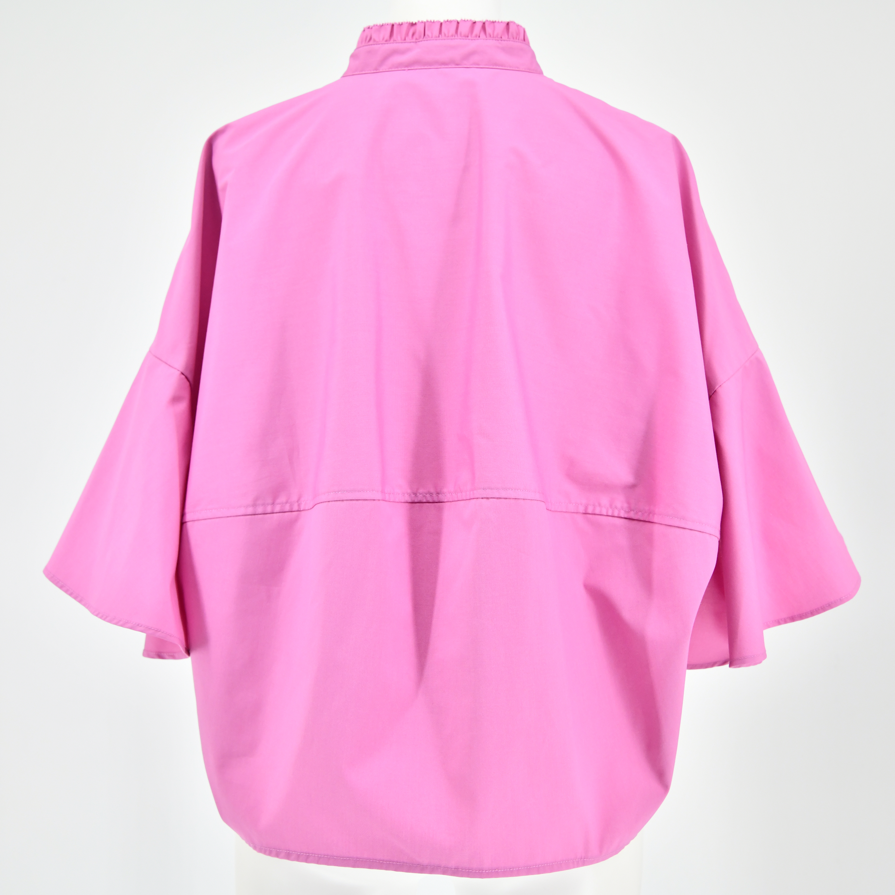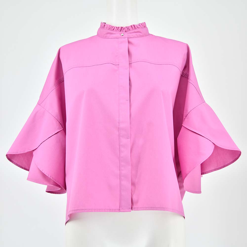 フレアスリーブ×クロップド丈のデザインで一枚で着映えするシャツ。