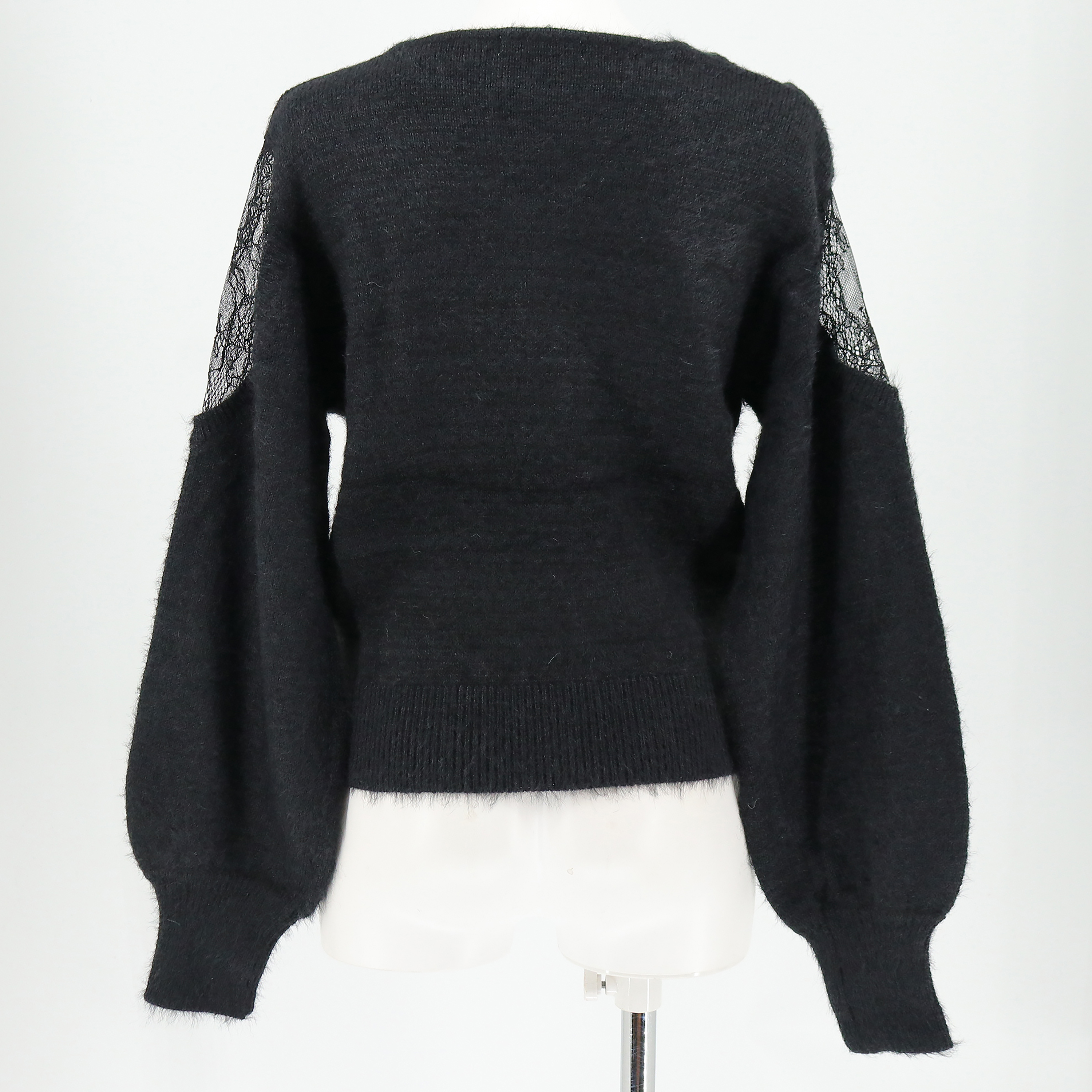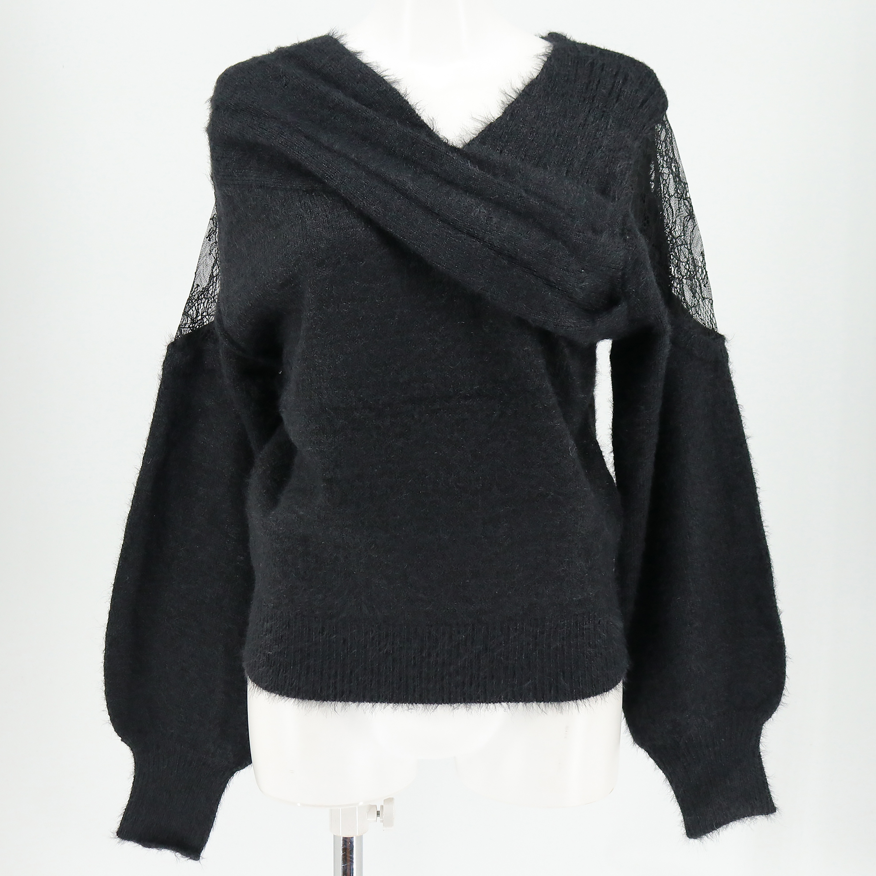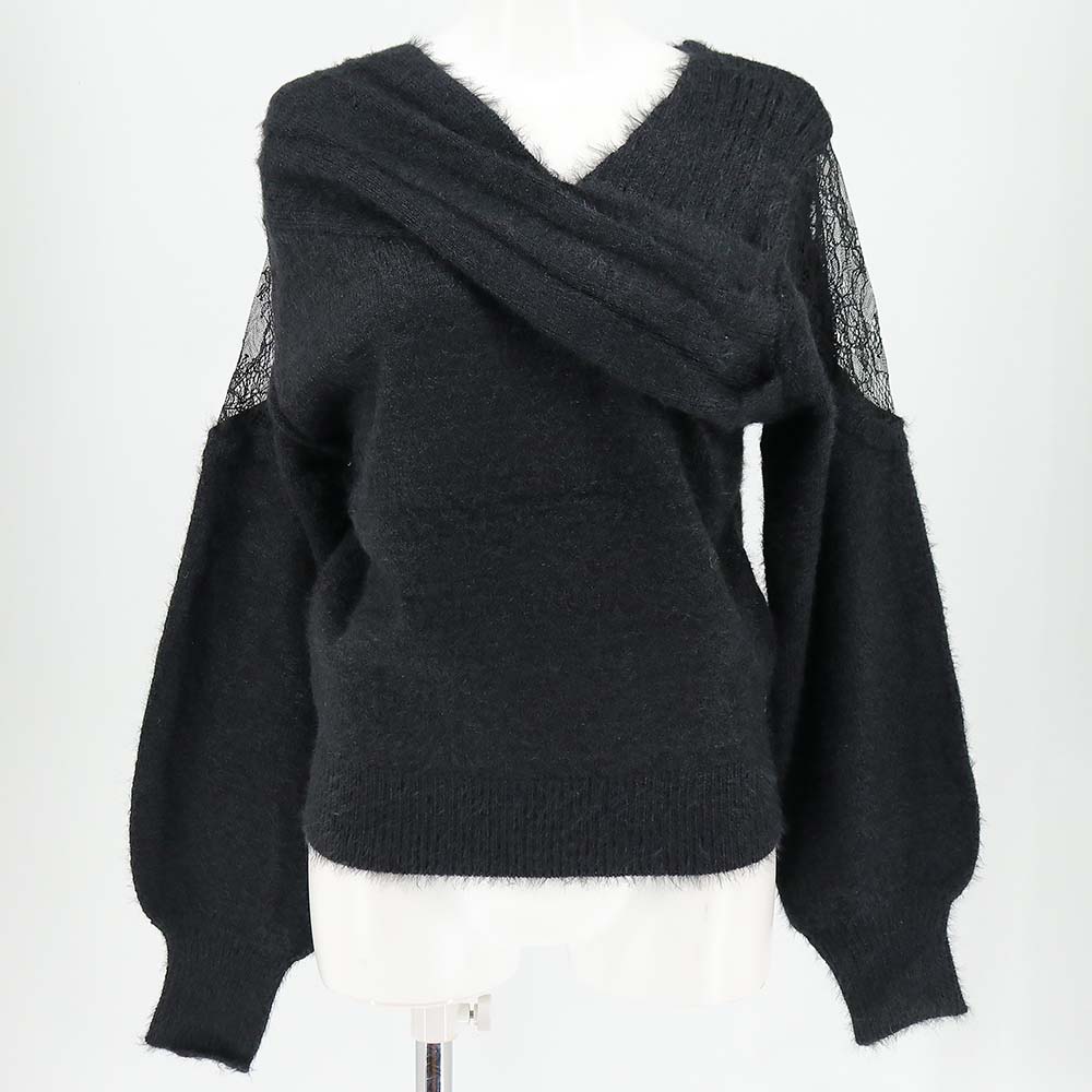 ちらりと肌がのぞくレース切替で、レディライクに仕上げたフェザーニット。
