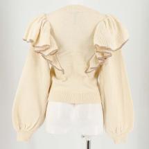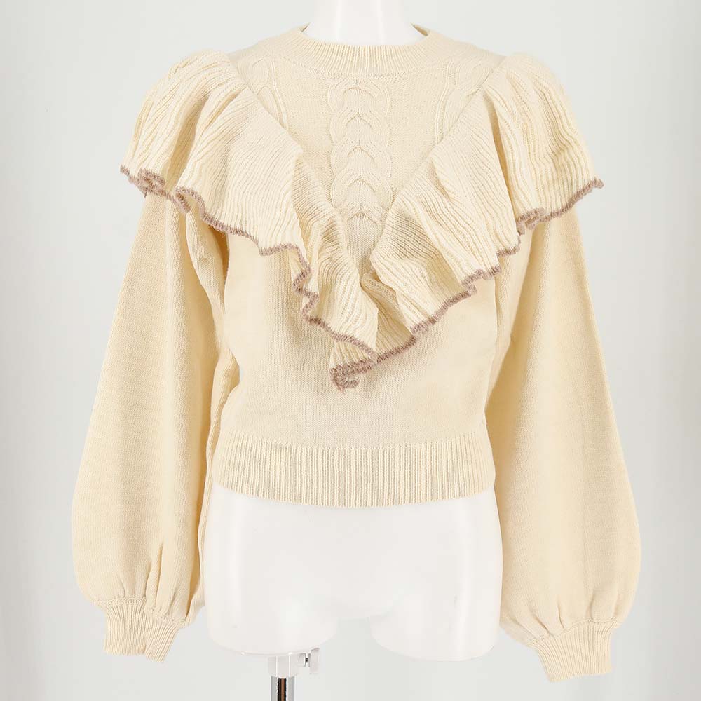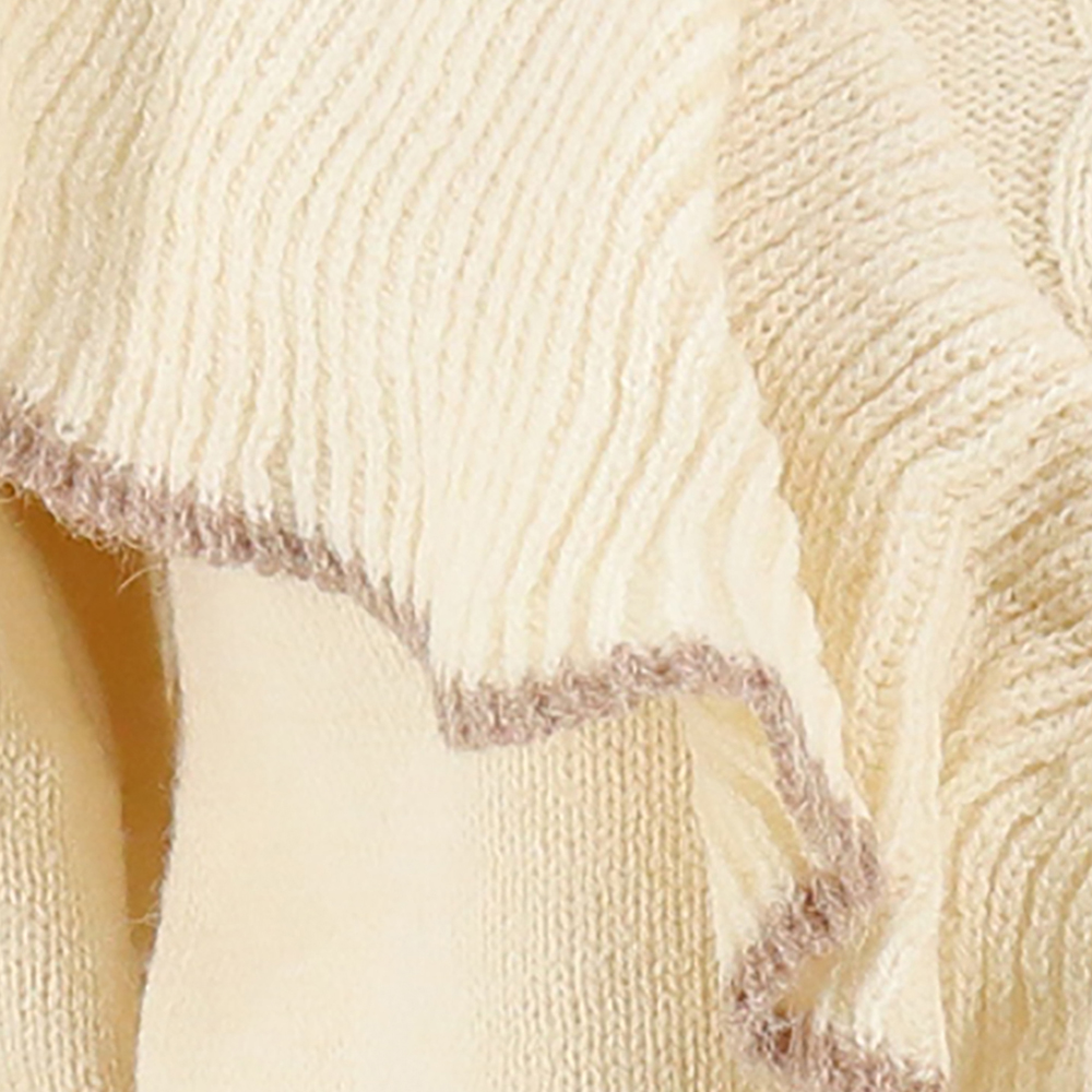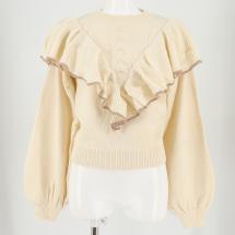 バイカラーのボリュームフリルが、装いに華やかさをプラスするニット。