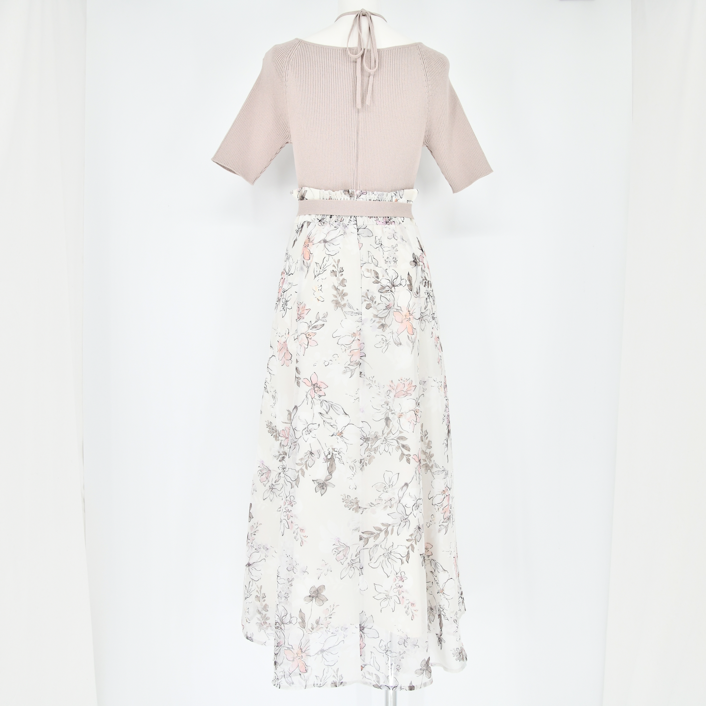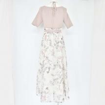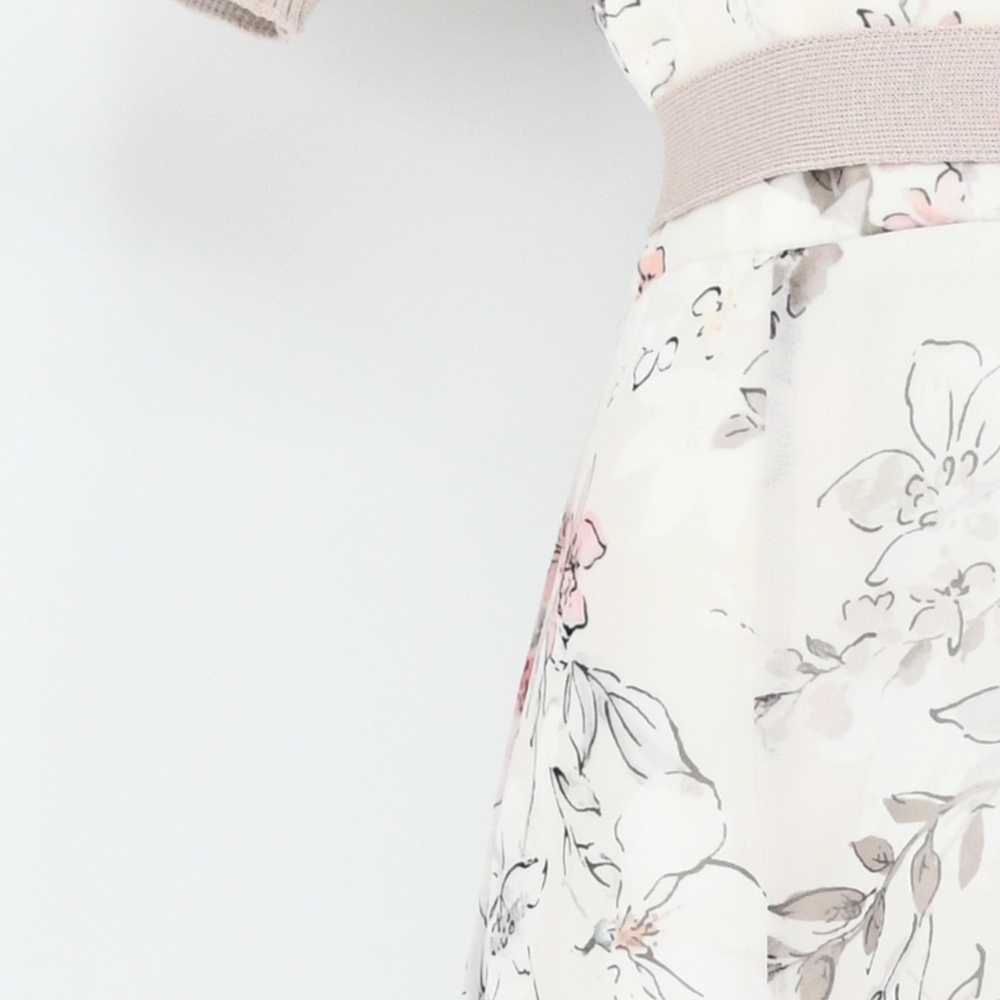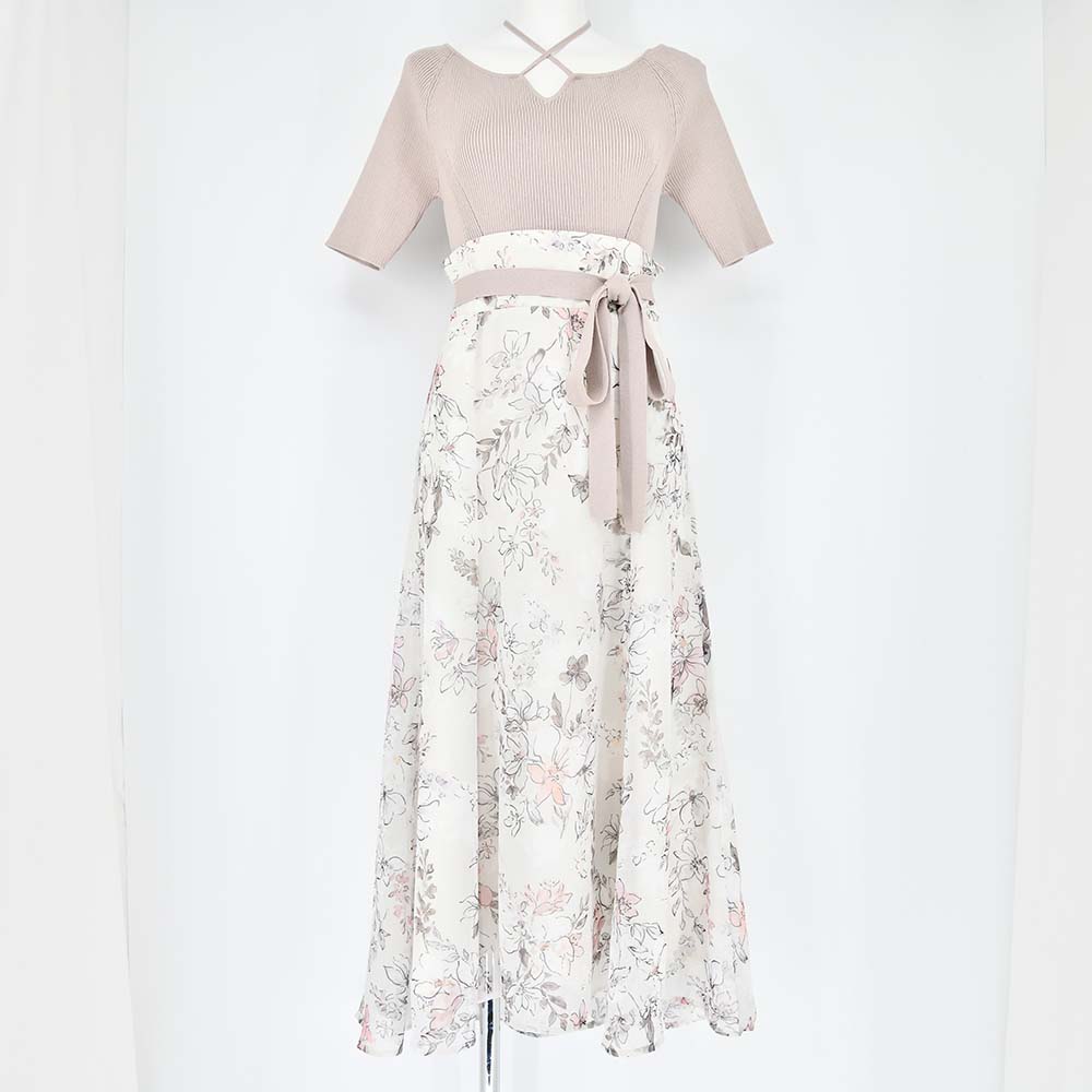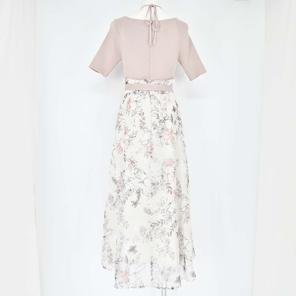 水彩タッチのカラフルなオリジナルフラワープリントを使用したニットドッキングワンピース。