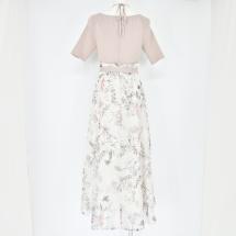 コルセット風の太めのベルト切替えで、ウエストの位置を高く見せてくれ、後ろのシャーリングで身体にフィットするので、よりスタイルアップしてくれます。