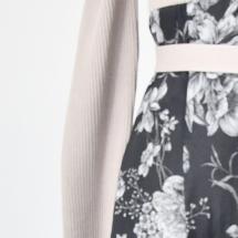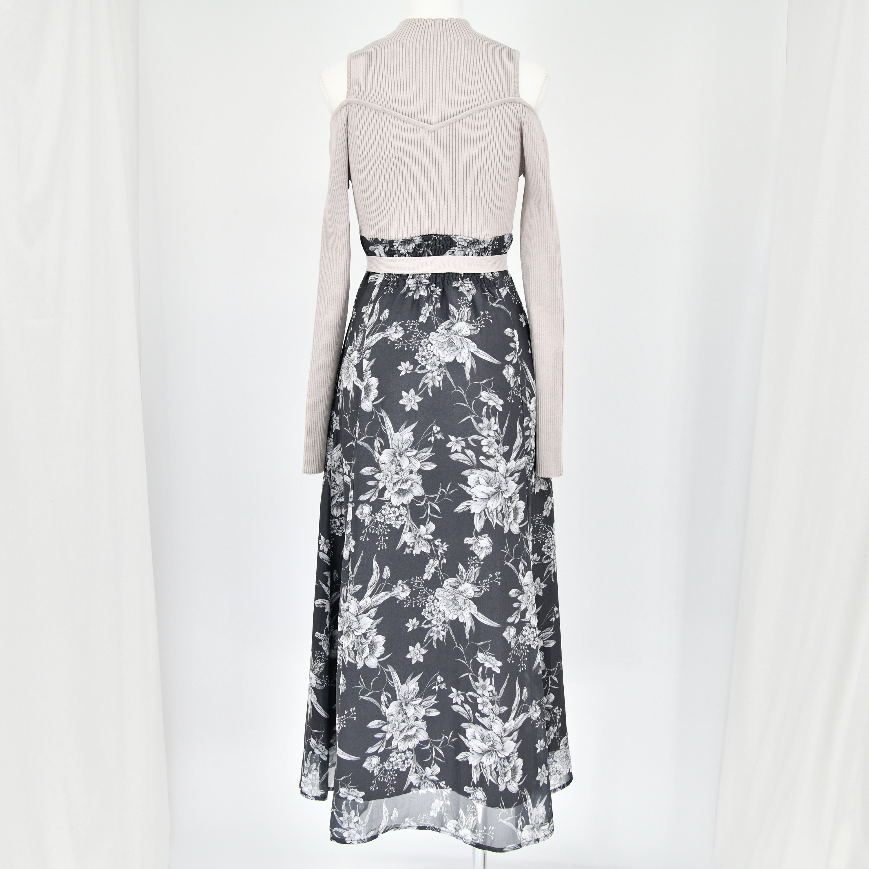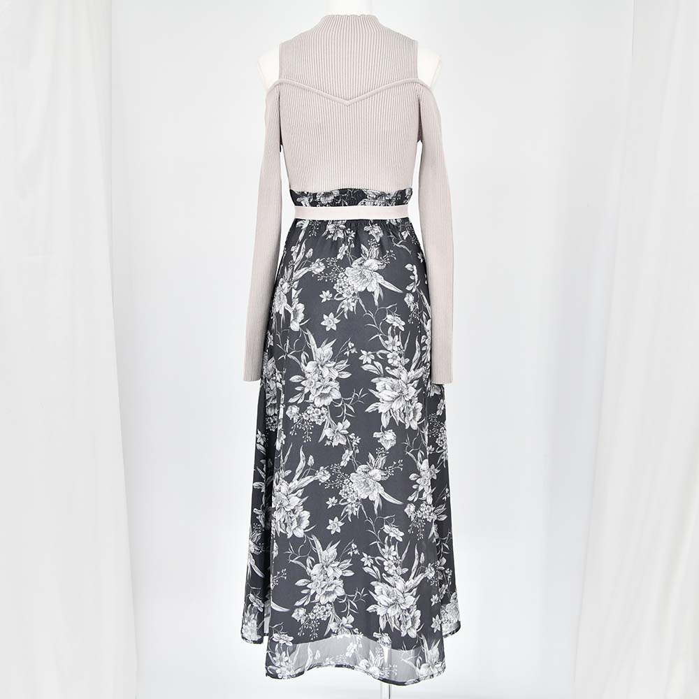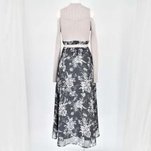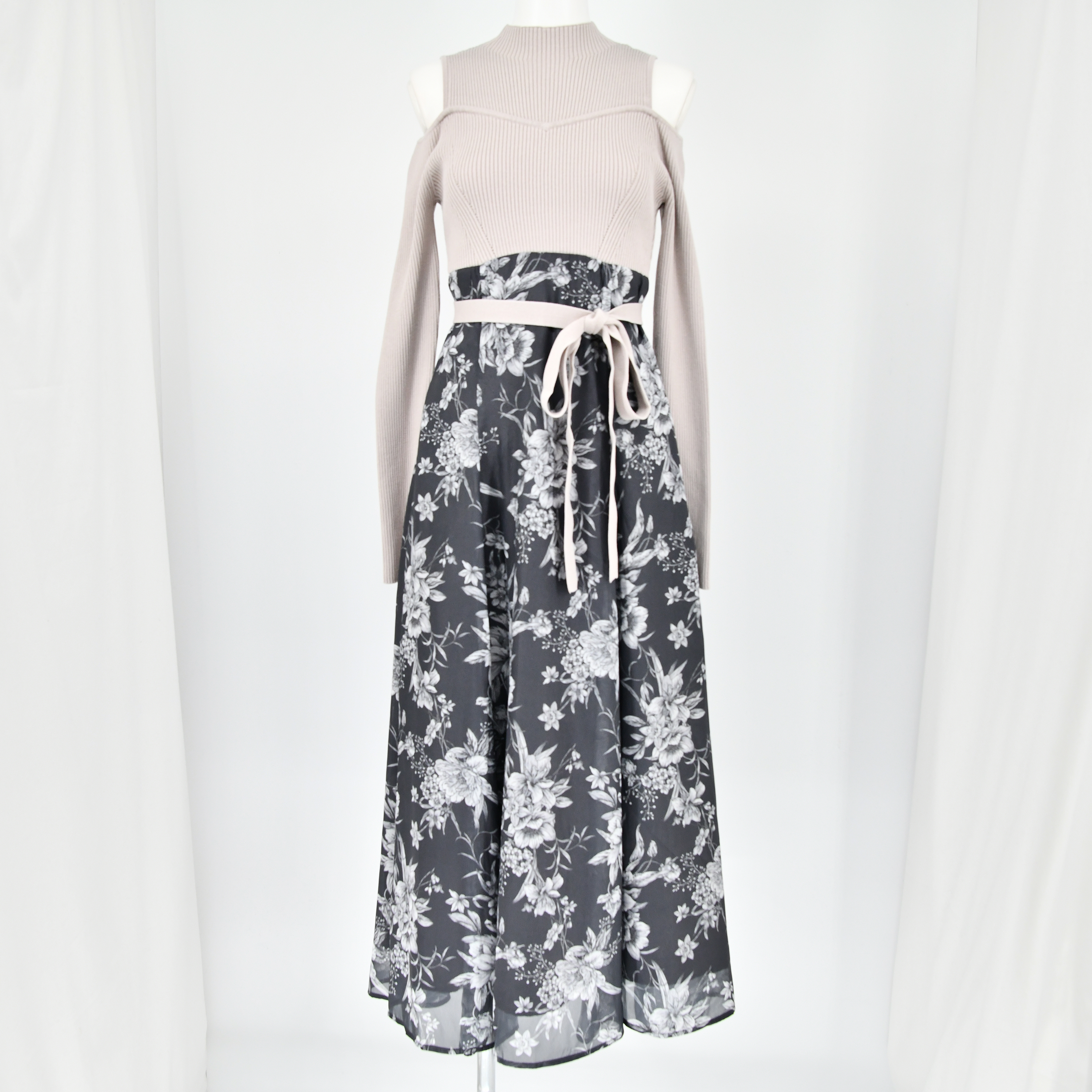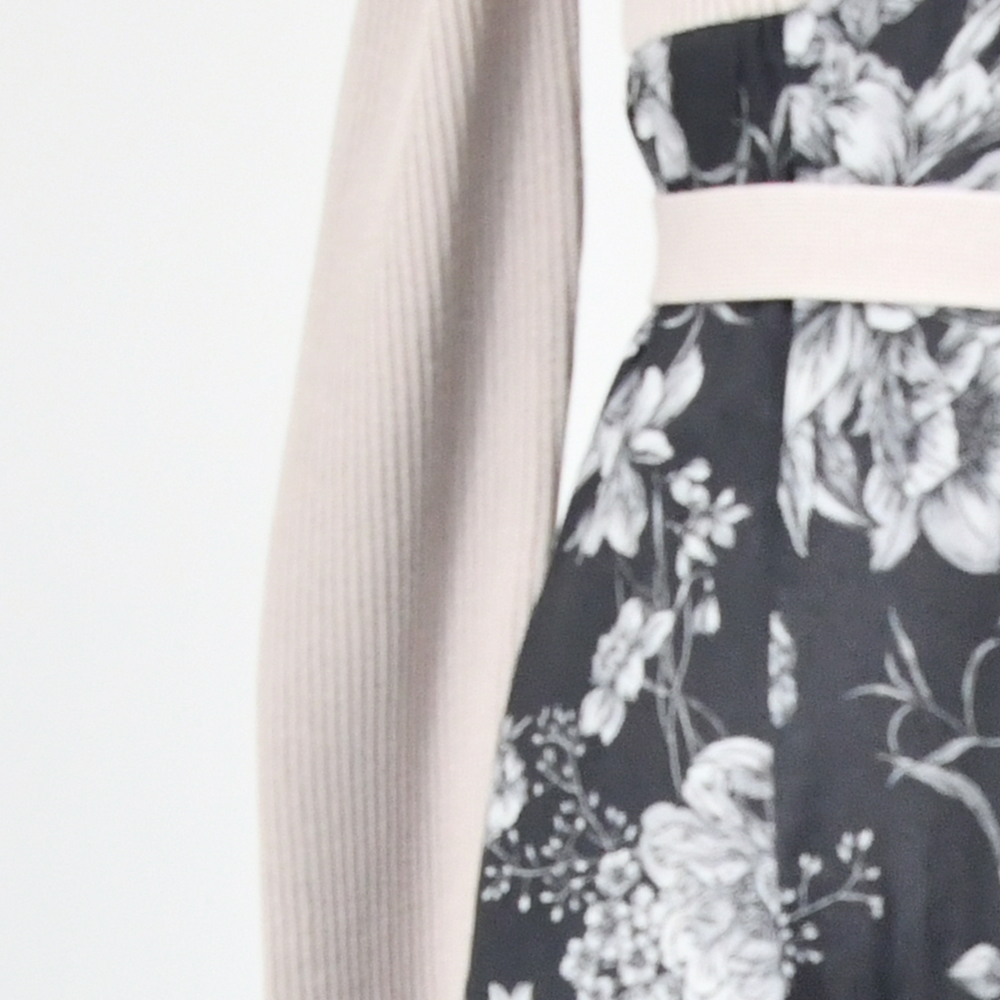 数種類の花を大きさを変えてメリハリをつけ、繊細なタッチで描いたオリジナルプリントを使ったドッキングワンピースです。