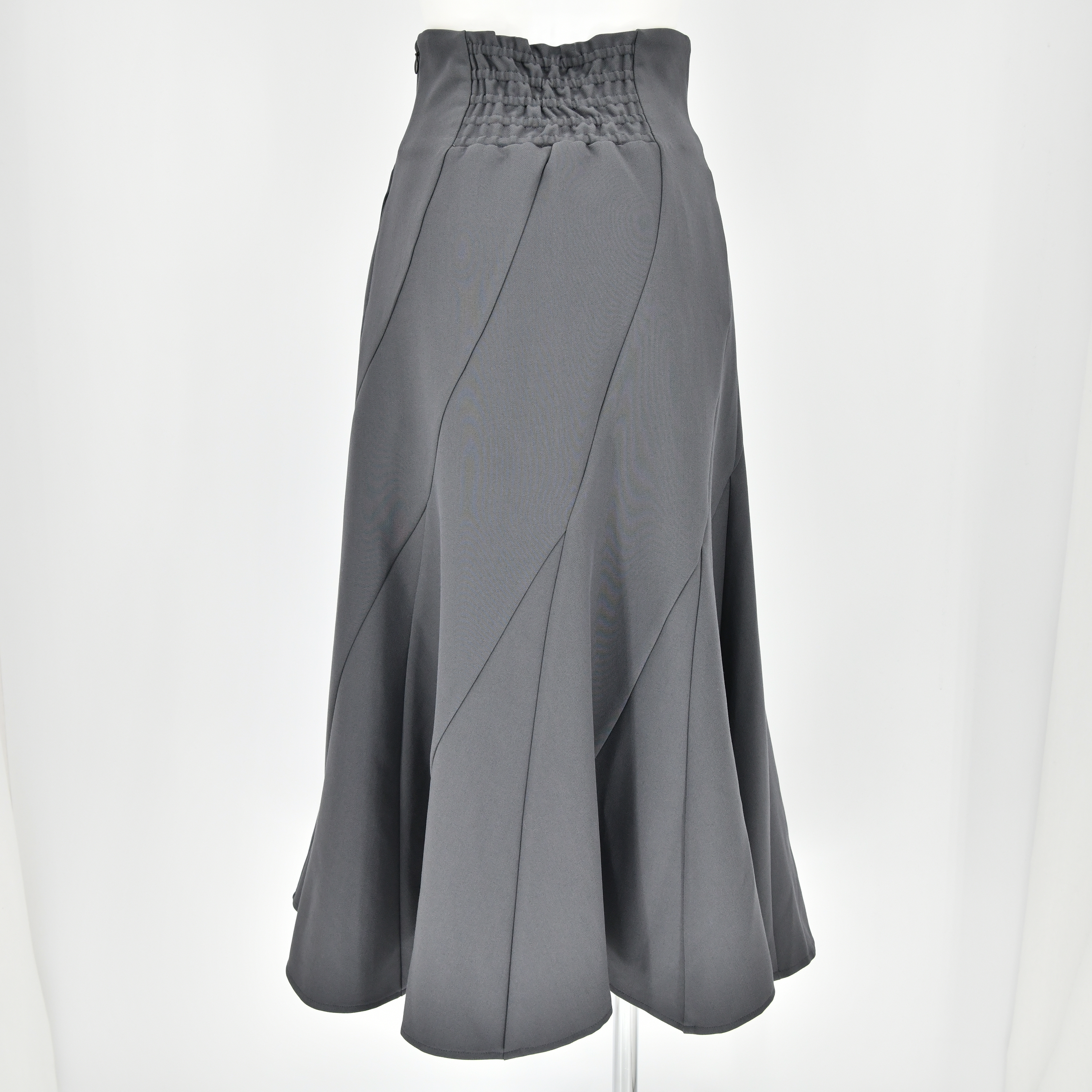 エスカルゴパターンを使用して、緩やかなマーメイドシルエットに仕立てたスカート。