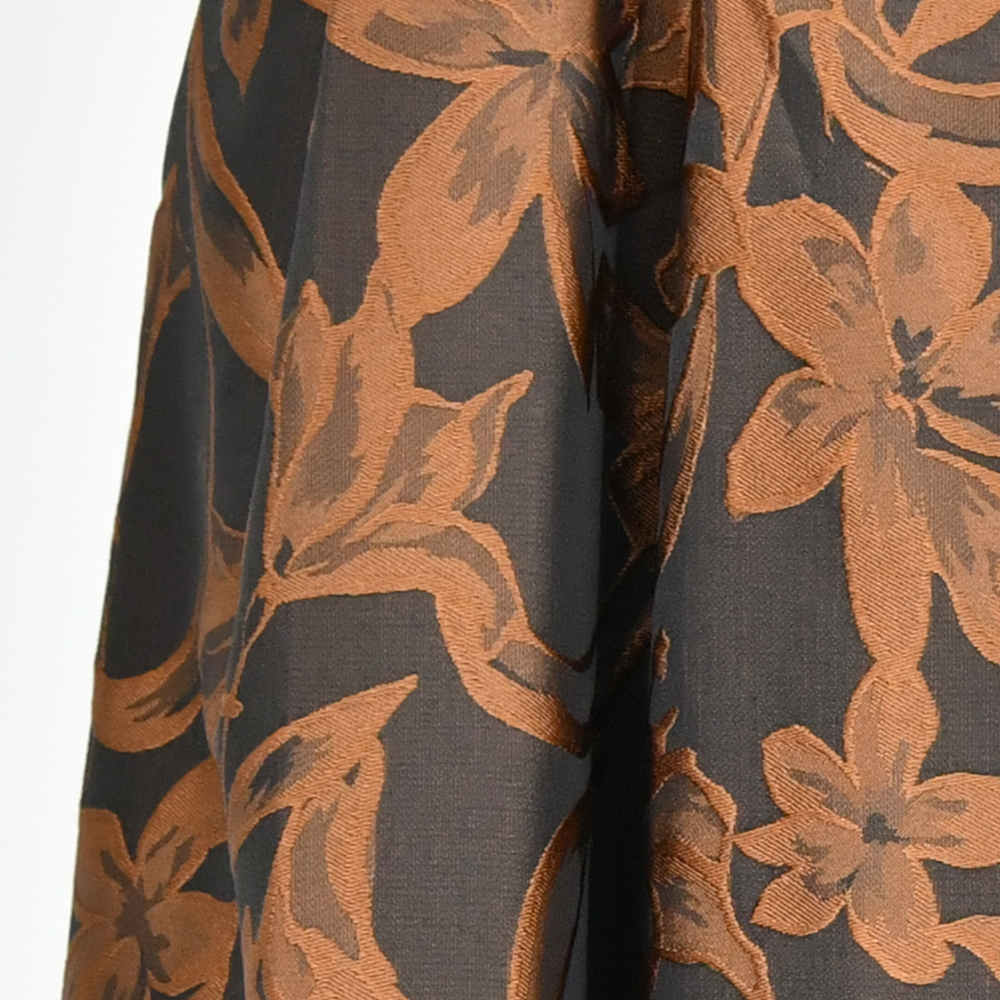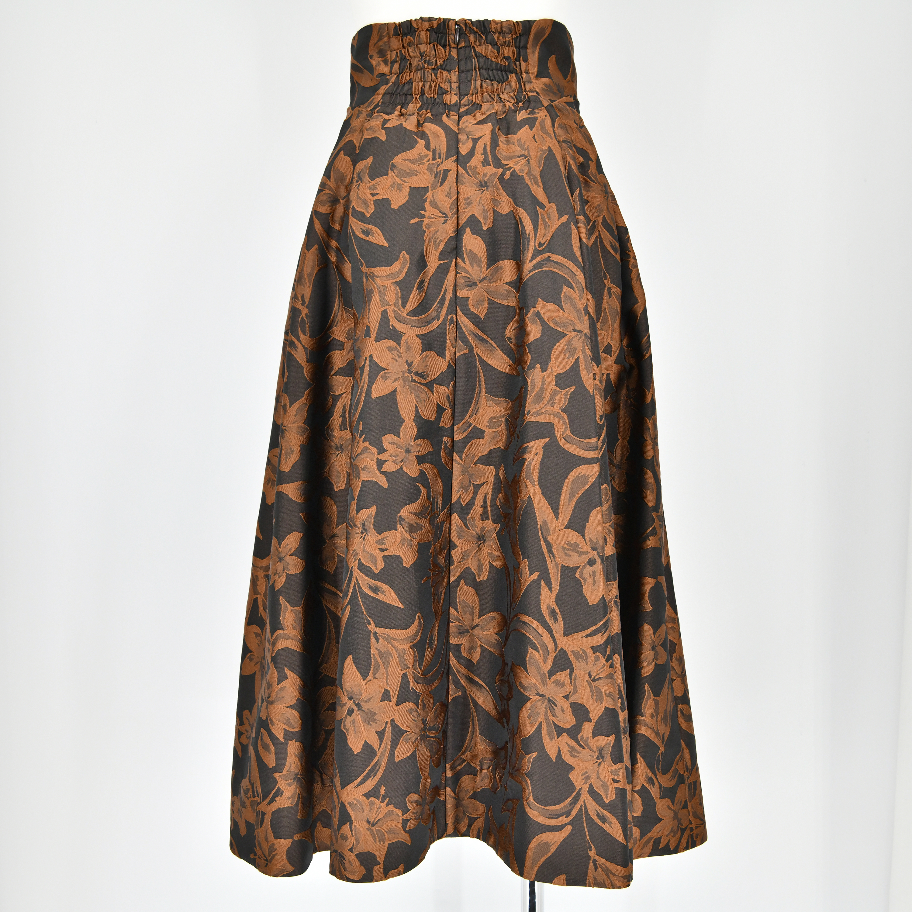 ボタニカルなオリジナルジャカード柄が上品で大人っぽいタックフレアスカートです。