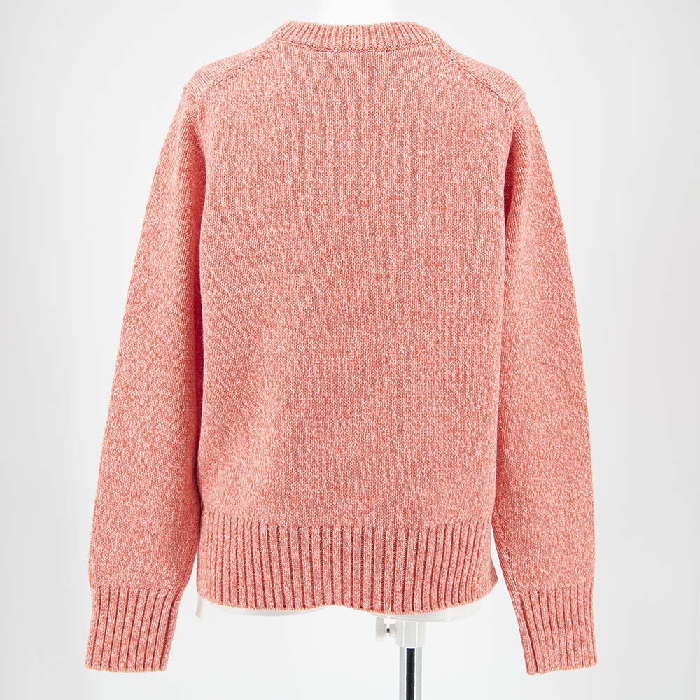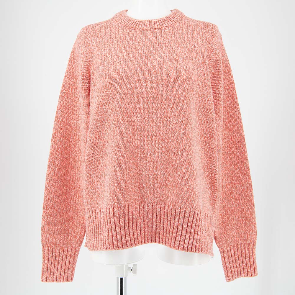 コットンブレンド素材の鮮やかな春カラーが目を惹くメランジニット。シンプルながら細やかなテクニックを効かせ、襟元のダブルステッチやワイドな裾リブなど、随所にこだわりのポイント散りばめました。コンパクトなサイジングはスタイリングに取り入れやすく、ボリュームスカートを合わせたミックスコーディネートもおすすめです。
