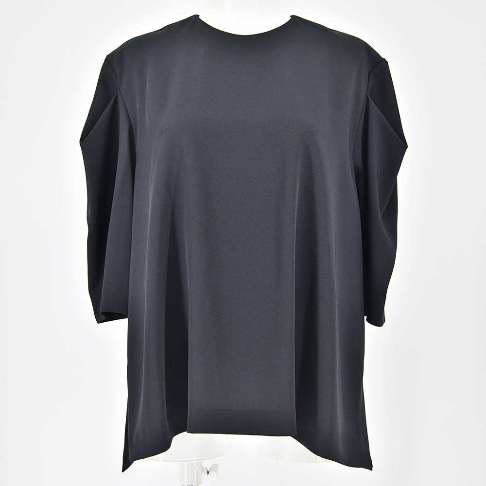 オケージョンや学校行事に最適な、「Mila Owen」らしいベーシックなセットアップです。タックで大人のパフスリーブを表現したトップスは、ラフさを演出するドロップショルダーとの女性らしい好バランスが魅力。サイドにはスリットをあしらい、トップスインしやすくデザインしました。センタープレスを効かせたパンツは、セミフレアにすることで美脚シルエットを意識。気になるヒップやお腹周りはすっきりと仕上げています。セットアップはもちろんのこと、それぞれ単体ユースもできるクオリティの高さです。