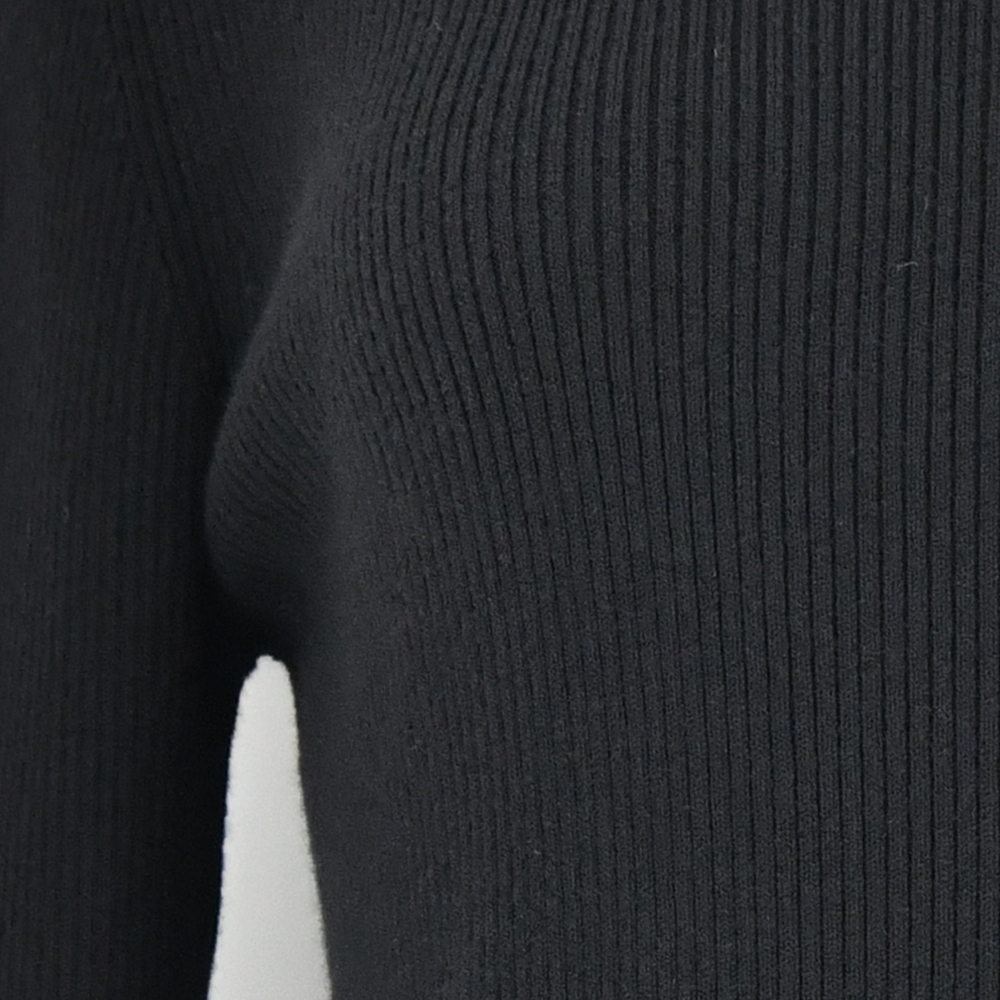 リブニットは着回しやすいようシンプルに、親指が出る指サックデザインでトレンド感を加算しています。