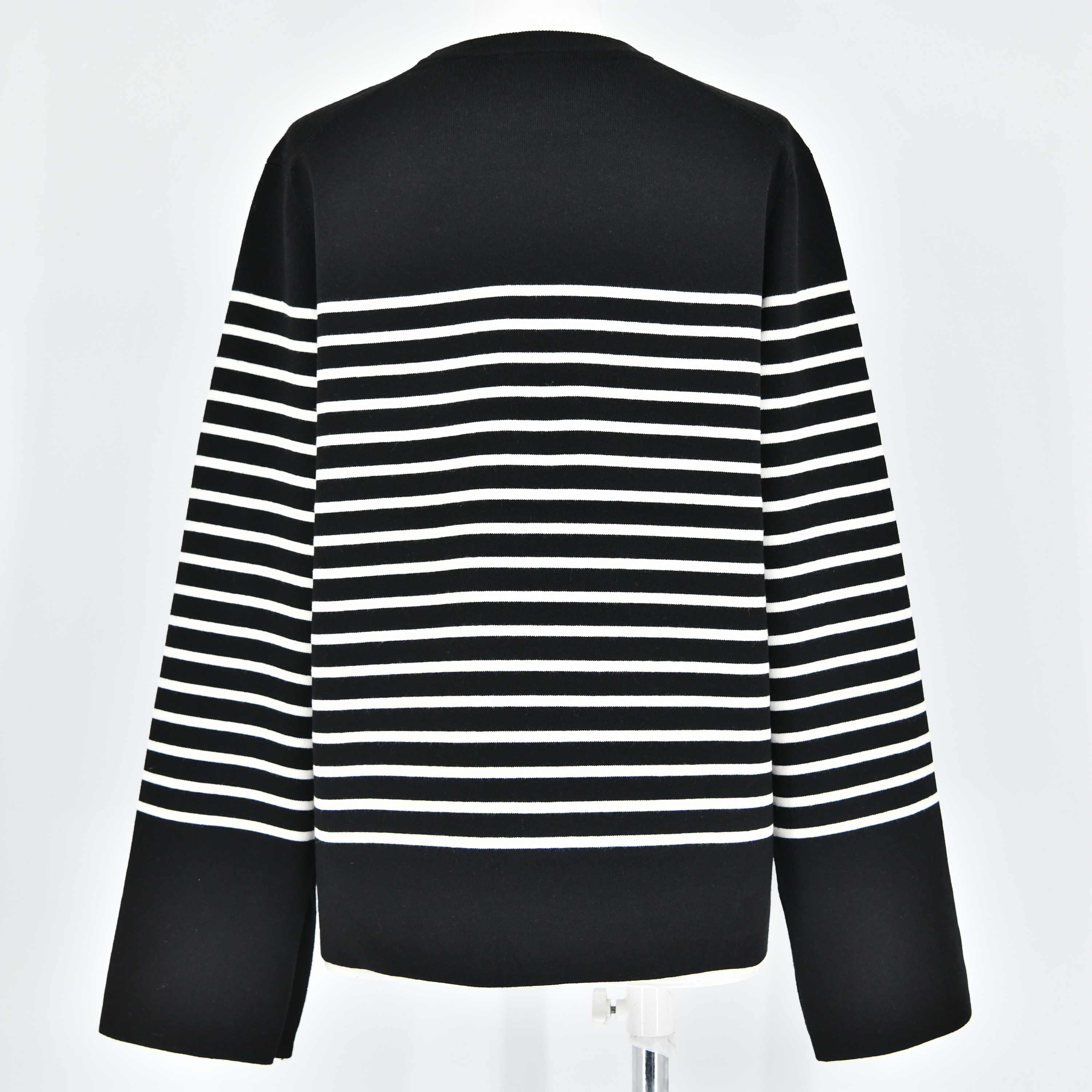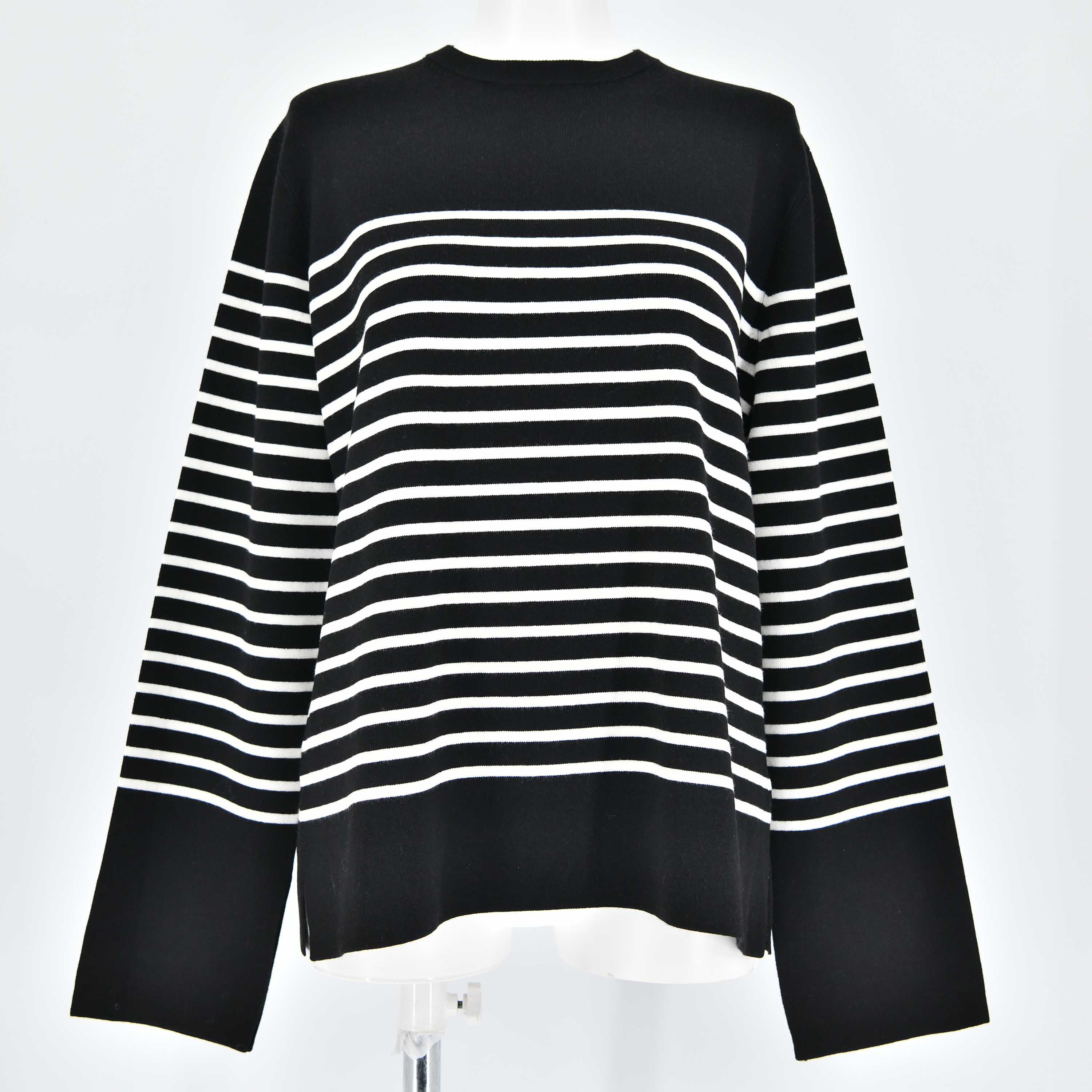 目面のきれいな総針編みで、コンパクトなサイズ感のクルーネックニットプルオーバー。袖口と裾にスリットが入っているデザインがポイント。袖口のスリットからは、手首が見えて女性らしさを演出。裾のスリットは、ボリュームのあるボトムを合わせた時に、腰まわりをすっきりと見せてくれます。