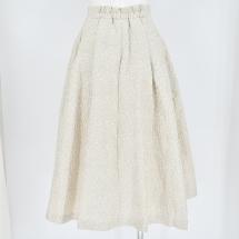 シャイニーなジャガード素材が、マットになりがちな冬の装いに、ツヤ感をプラスしてくれるジャガードフレアスカート。ウエスト部分のタックを中縫いで開かないようにすることですっきりとした腰回りを作り、広がった後はストレートに下に落ちる甘過ぎないフレアラインが、計算された1枚。大人のリッチ感がありながら、エアリーで軽いものポイントです。1枚でコーディネートが華やぐので、シンプルなシャツやニット、コンパクトトップスと好相性です。