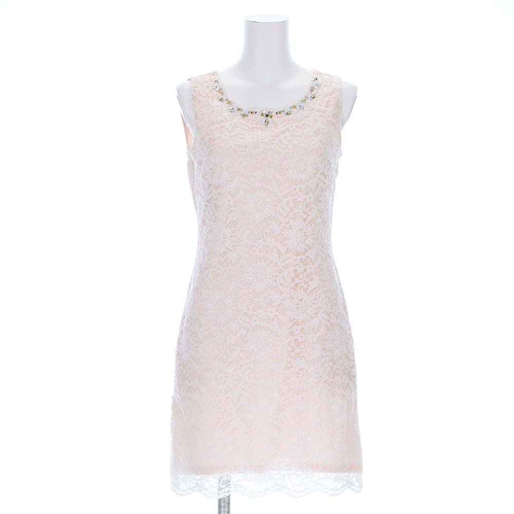 顔まわりのビジューが目を引く大人可愛いワンピース。