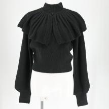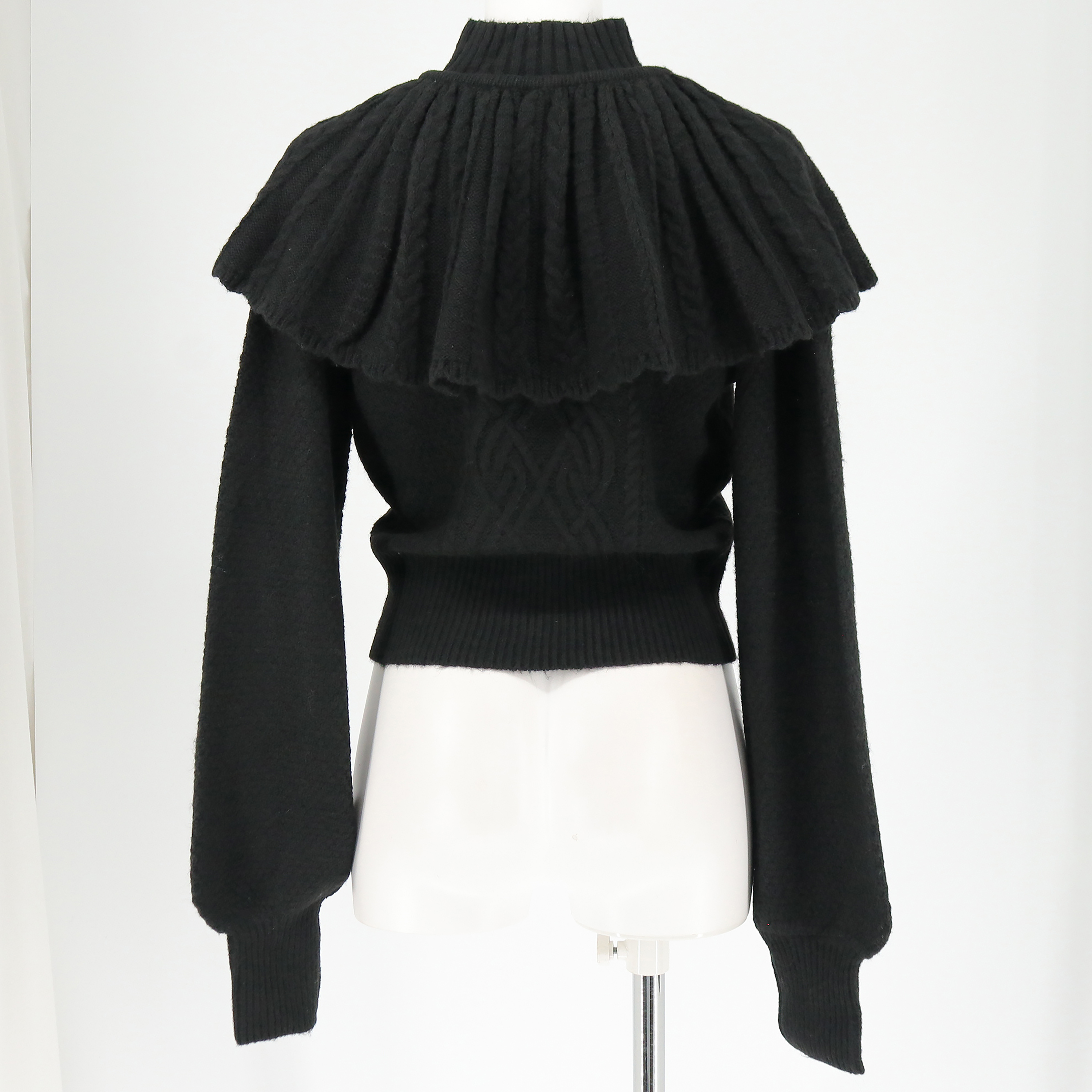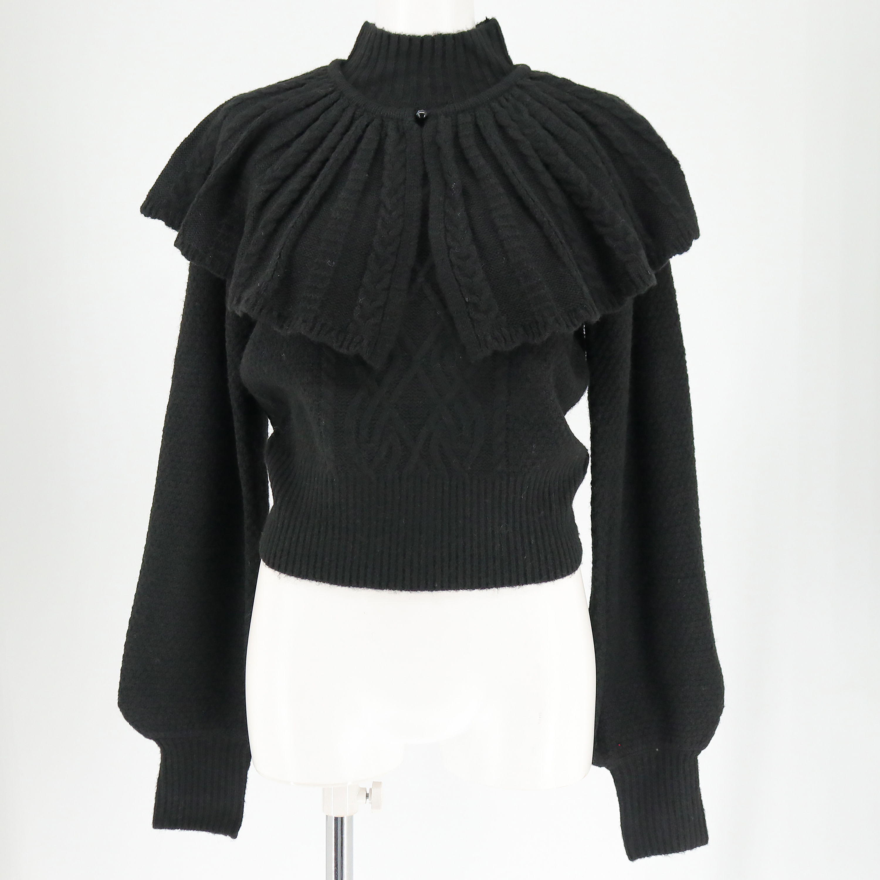 ケープ部分は取り外し可能になっており2Wayでお楽しみ頂けるので気分でコーディネートできる1着になります。取って頂くとハイネックのケーブルニットになり、ボトムを選ばず合わせやすいデザインに仕上げています。コンパクトな丈感なのでインでもアウトでもバランスよく着れる万能ニットです◎