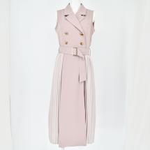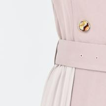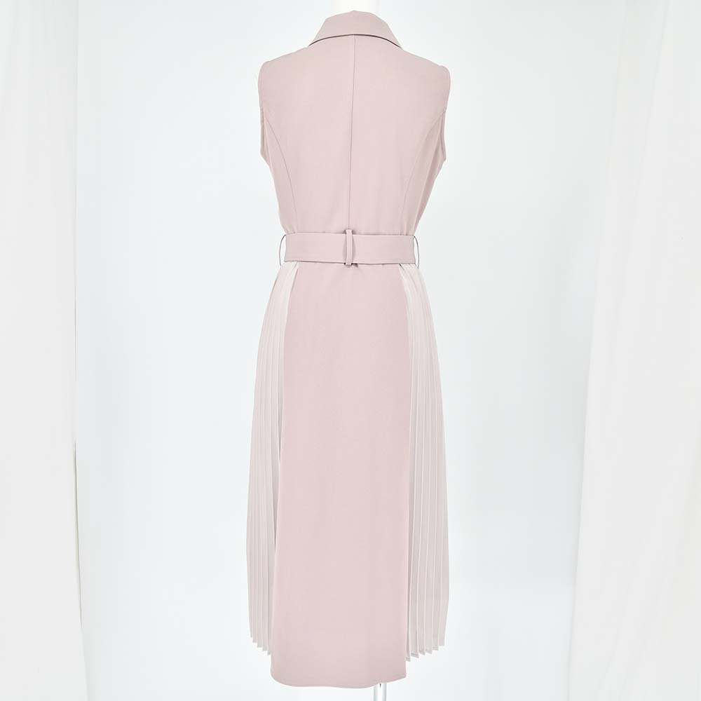 こだわりの詰まったディティールで1枚で華やかに決まる1枚。丈感も長すぎず、どんな身長の方でもスッキリと着ていただけます。ベルトもついているので1枚でスタイルアップ。細かいプリーツをあしらい揺れ感もしっかり出るアイテム。程よく身体に沿う絶妙なシルエットとアイコニックなデザインで1枚でキチっと感のでる上品な大人の女性コーデに。