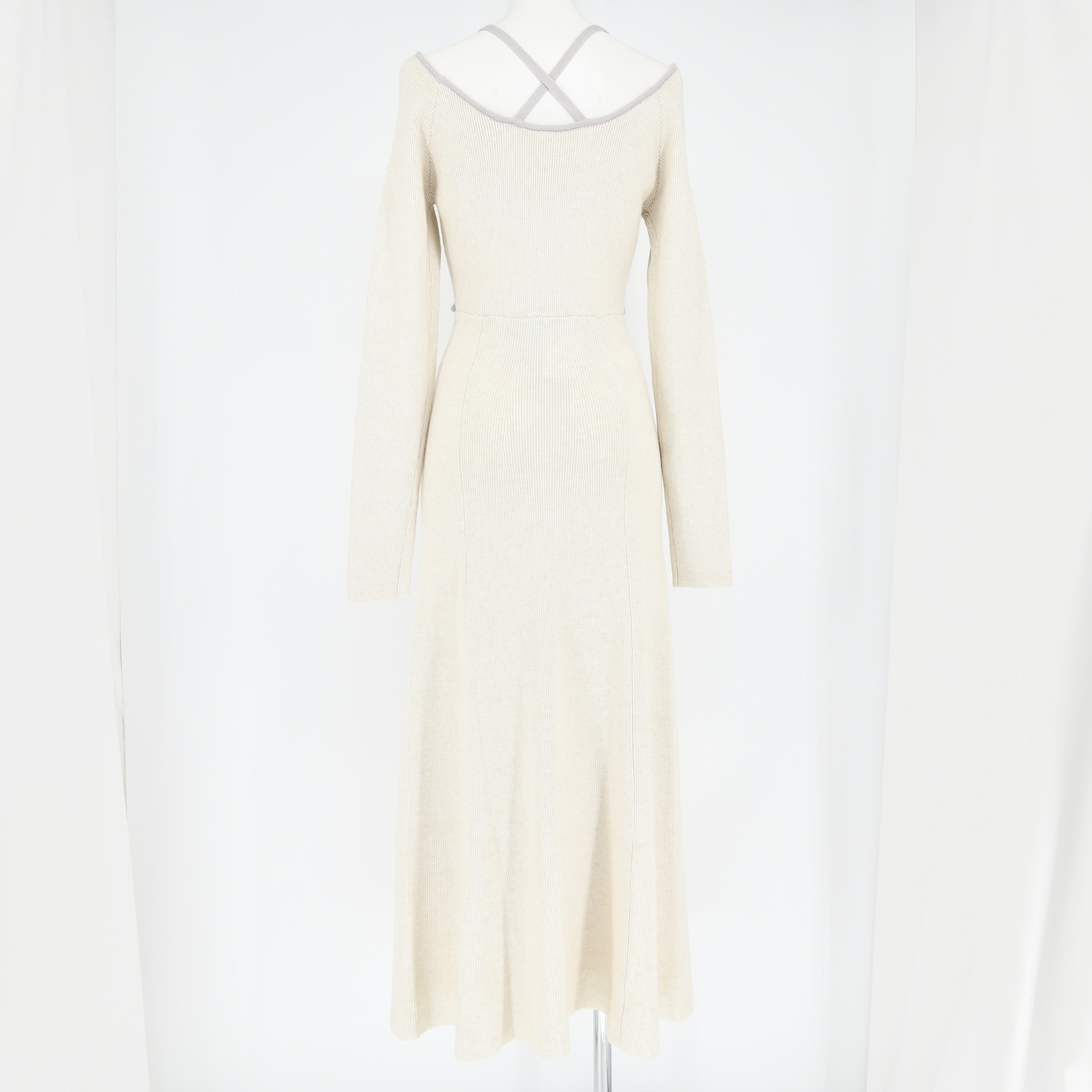 後ろの襟ぐりは細紐でクロスデザインになっているところもポイント!