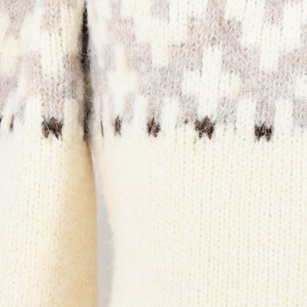 起毛感ある糸だと柄が馴染み、柔らかい印象のノルディック柄ニットに♪
