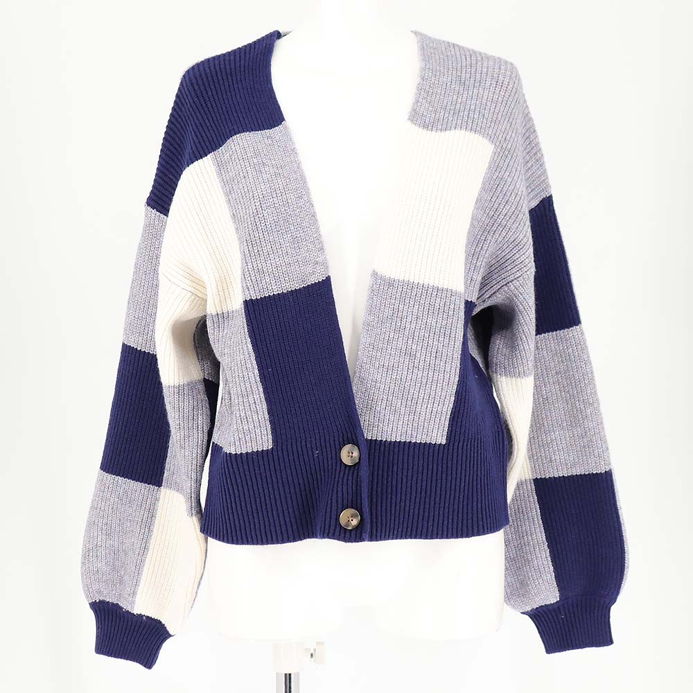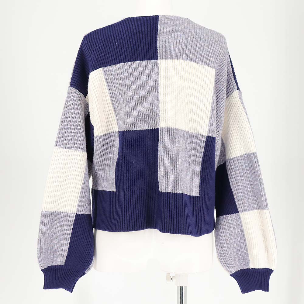 大きめのブロックチェックが可愛い、ショートカーディガンです。