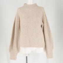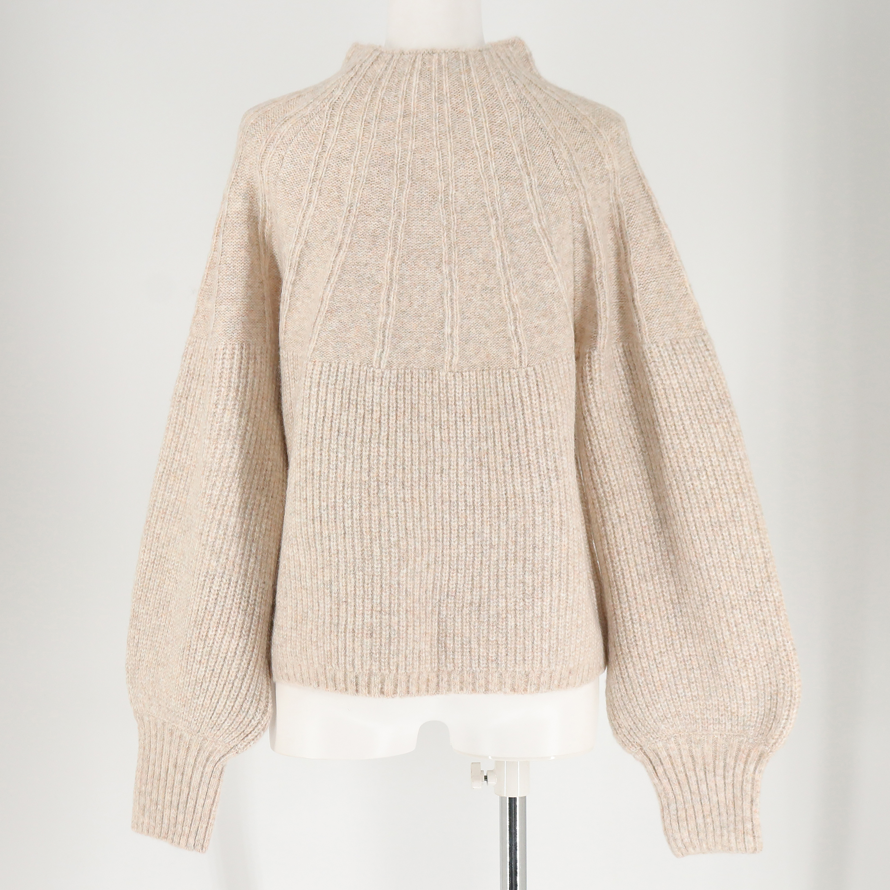 ふわっと弾力のあるメランジ糸を使用したキュウシン柄のニット。
