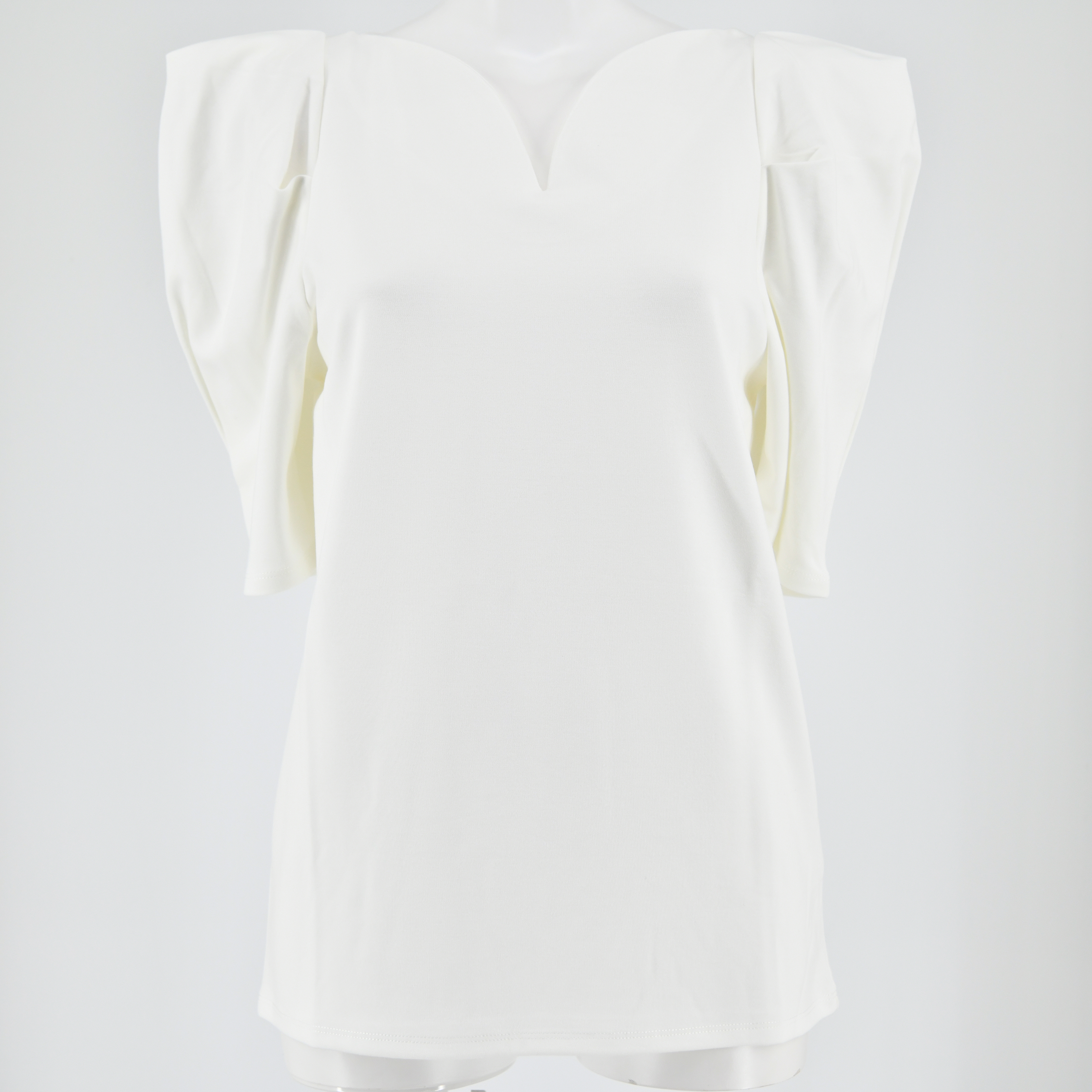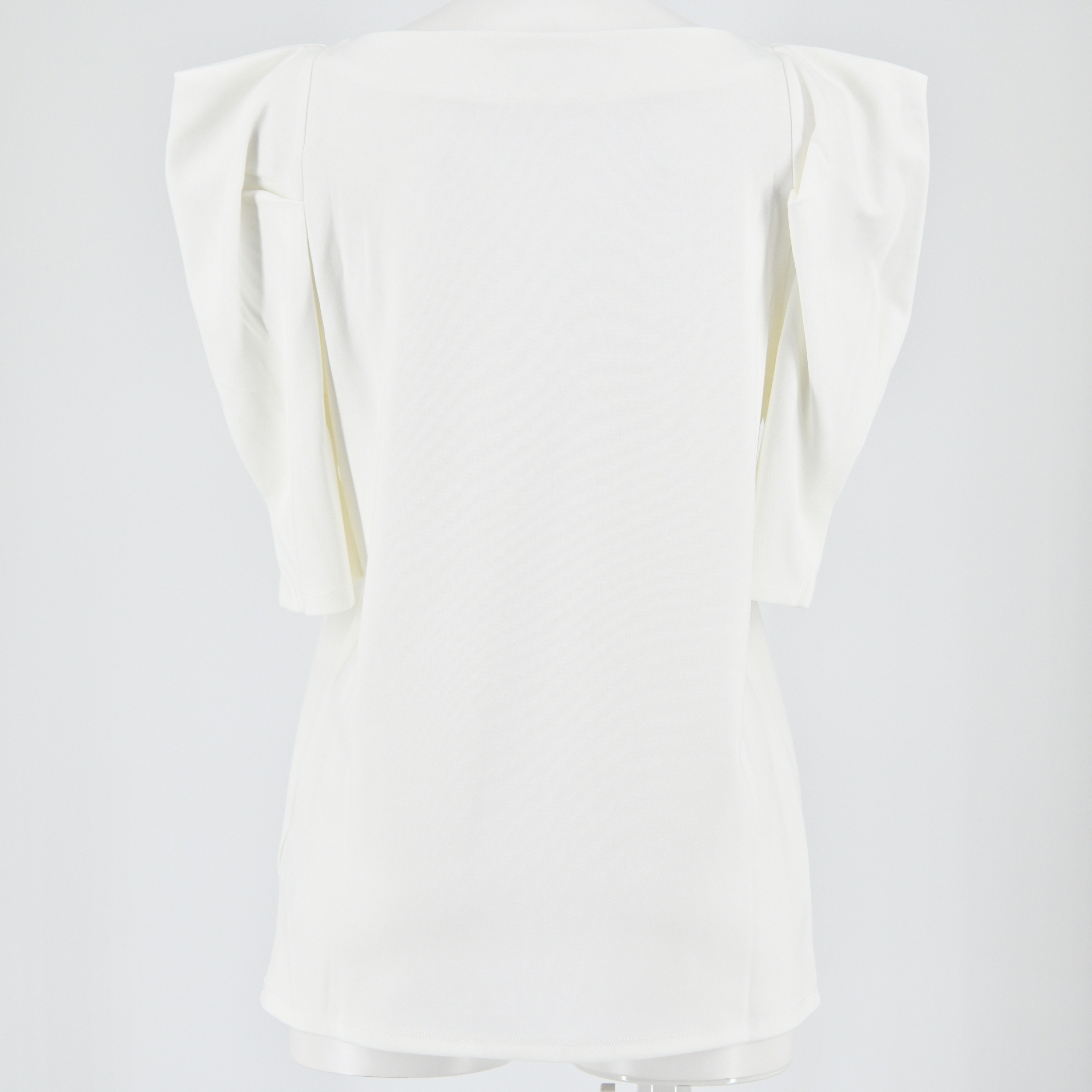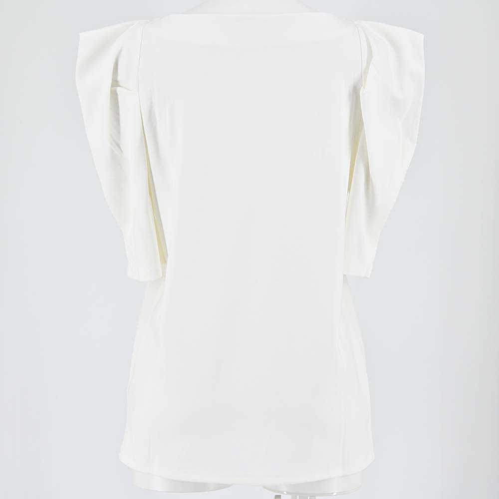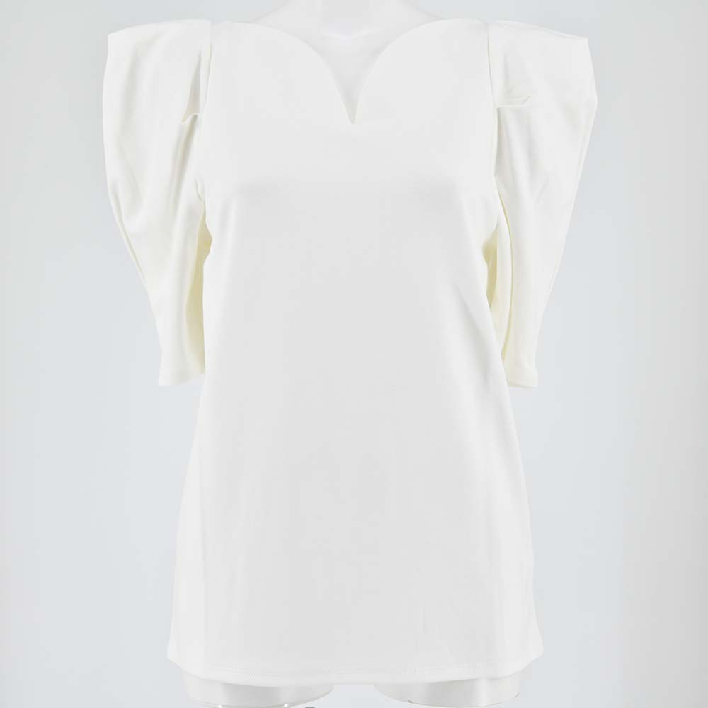 構築的なフォルムのボリューム袖が印象的なハーフスリーブトップス。シンプルながら女性らしさも忘れない「SNIDEL」ならではのこだわりが光る1着です。ネック部分には緩やかなカーブ描くカッティングを入れすっきりとした印象に。合わせるボトムを選ばないので、幅広いスタイリングに取り入れられます。