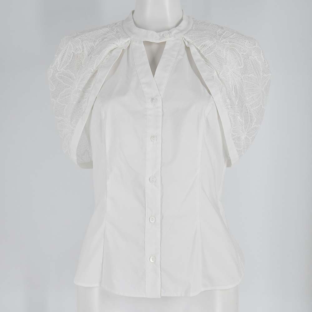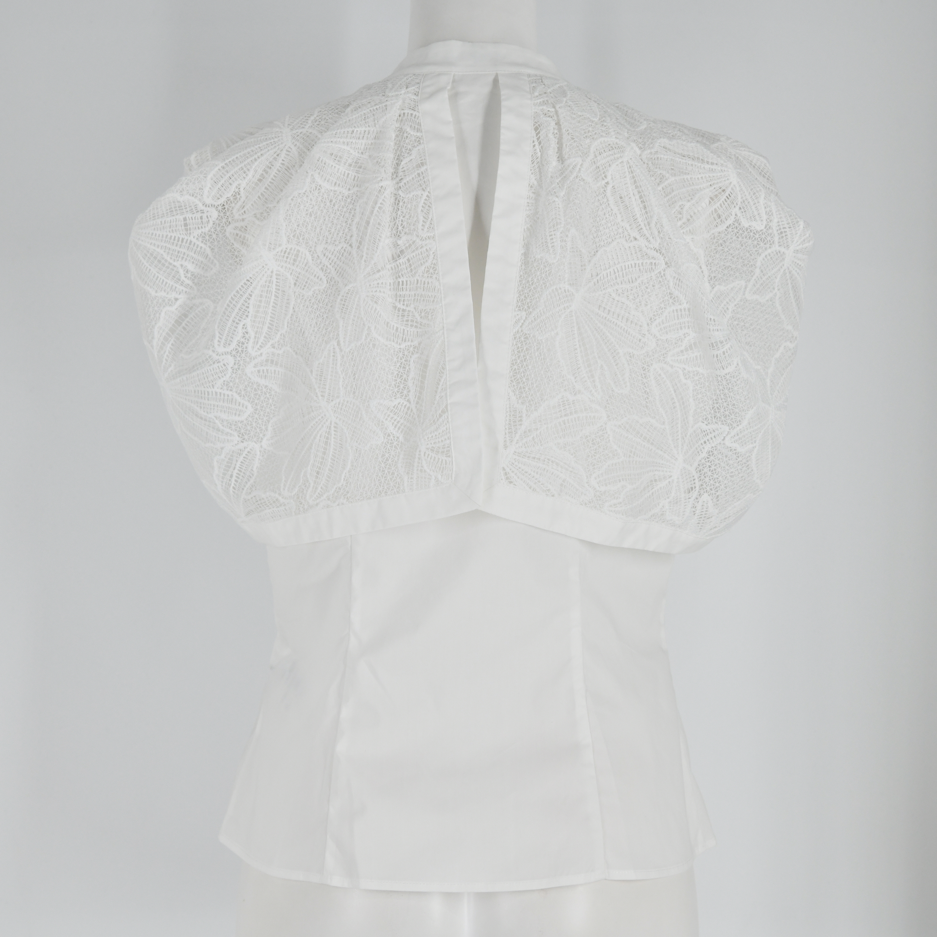 肩をすっぽりと覆うケープのような袖が目を引く、クラシカルモードなブラウス。デコルテオープンデザインで女性らしさと抜け感をプラスしました。身頃部分はすっきりとシンプルに仕上げることでメリハリの取れたバランスの良いルックスに。品の良いデザインなのでオンオフ問わずスタイリングに取り入れられ、着まわし力は抜群です。
