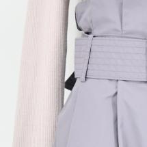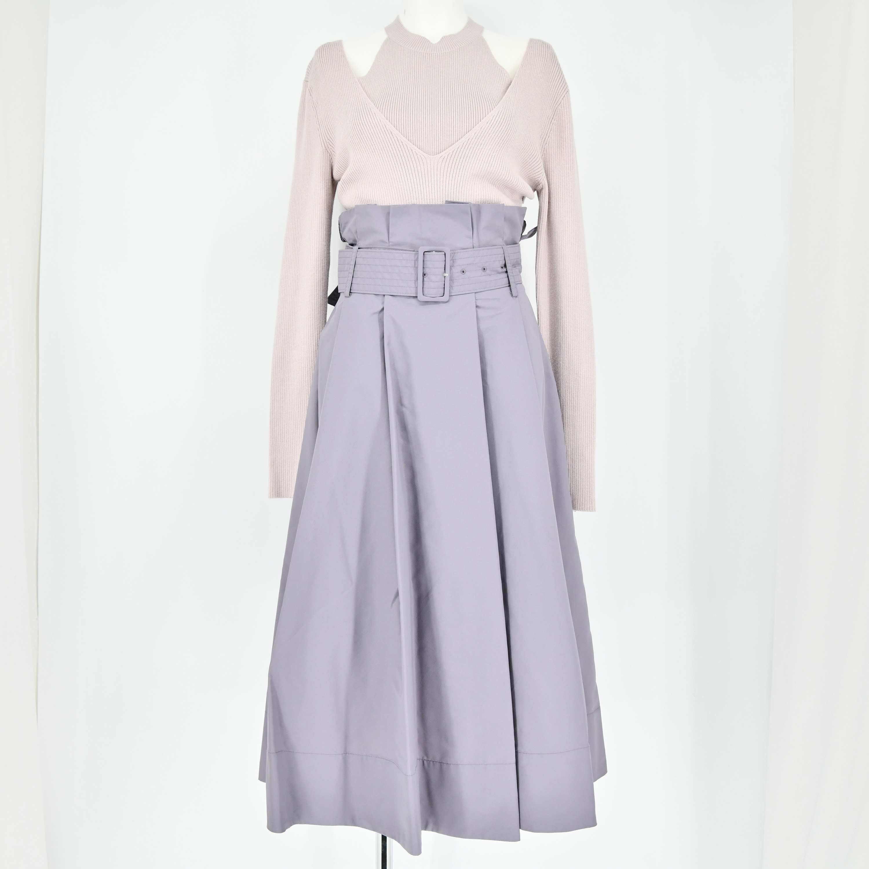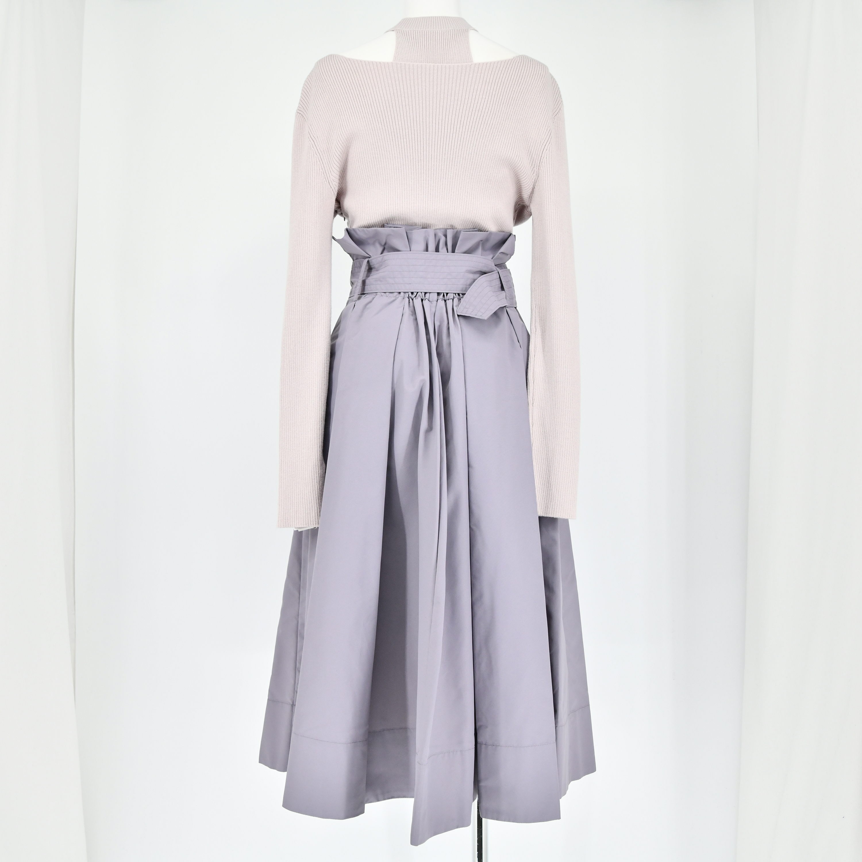 フレアスカートとニットプルオーバーを組み合わせたドッキングワンピは、あれこれ考えずとも簡単に上品できれいなムードが手に入る優秀な1枚。ニットは、アメスリトップスの上から長袖のVネックニットを重ねているように見えるレイヤード風デザイン。肩部分がチラリとのぞき、今っぽい肌見せを叶えます。合わせたフレアスカートは、ハリ感と軽やかさがこれからの季節にぴったりなタフタ素材。ウエストコンシャスなデザインでスタイルアップも狙いました。