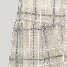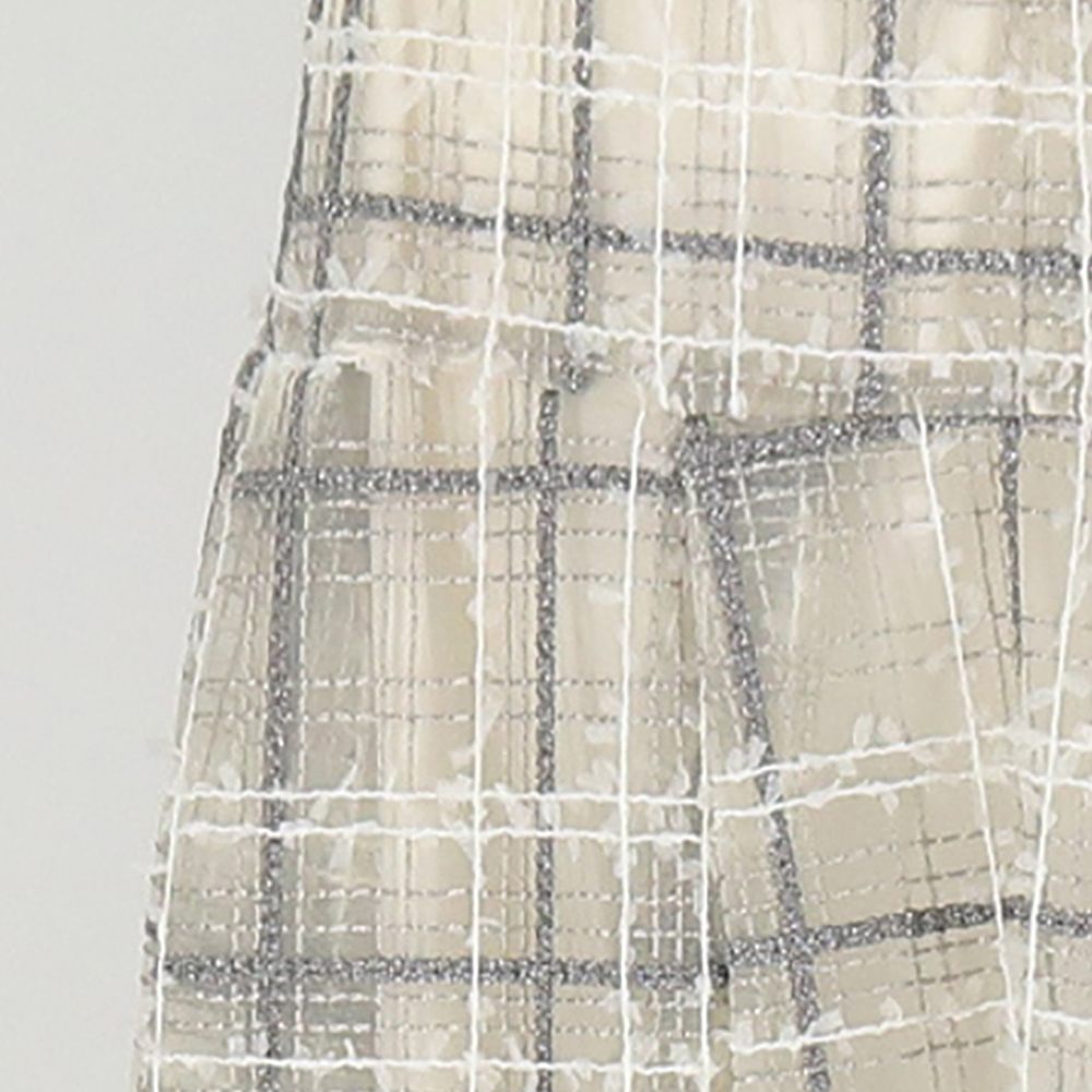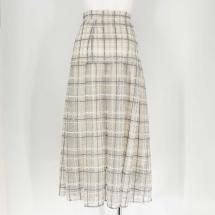 立体感があり華やかな印象の糸を使い、シアーツイードのイメージをチュール上で表現したチェックスカート。シアーで軽やかな素材感が足元をセンシュアルに見せ、女性らしさを存分に高めてくれます。タックアンドフレアで形成された上品なシルエットで、大人っぽさも感じさせる仕上がりに。華やかで存在感のあるデザインなので、トップスはシンプルにまとめるのが好バランスの秘訣です。
