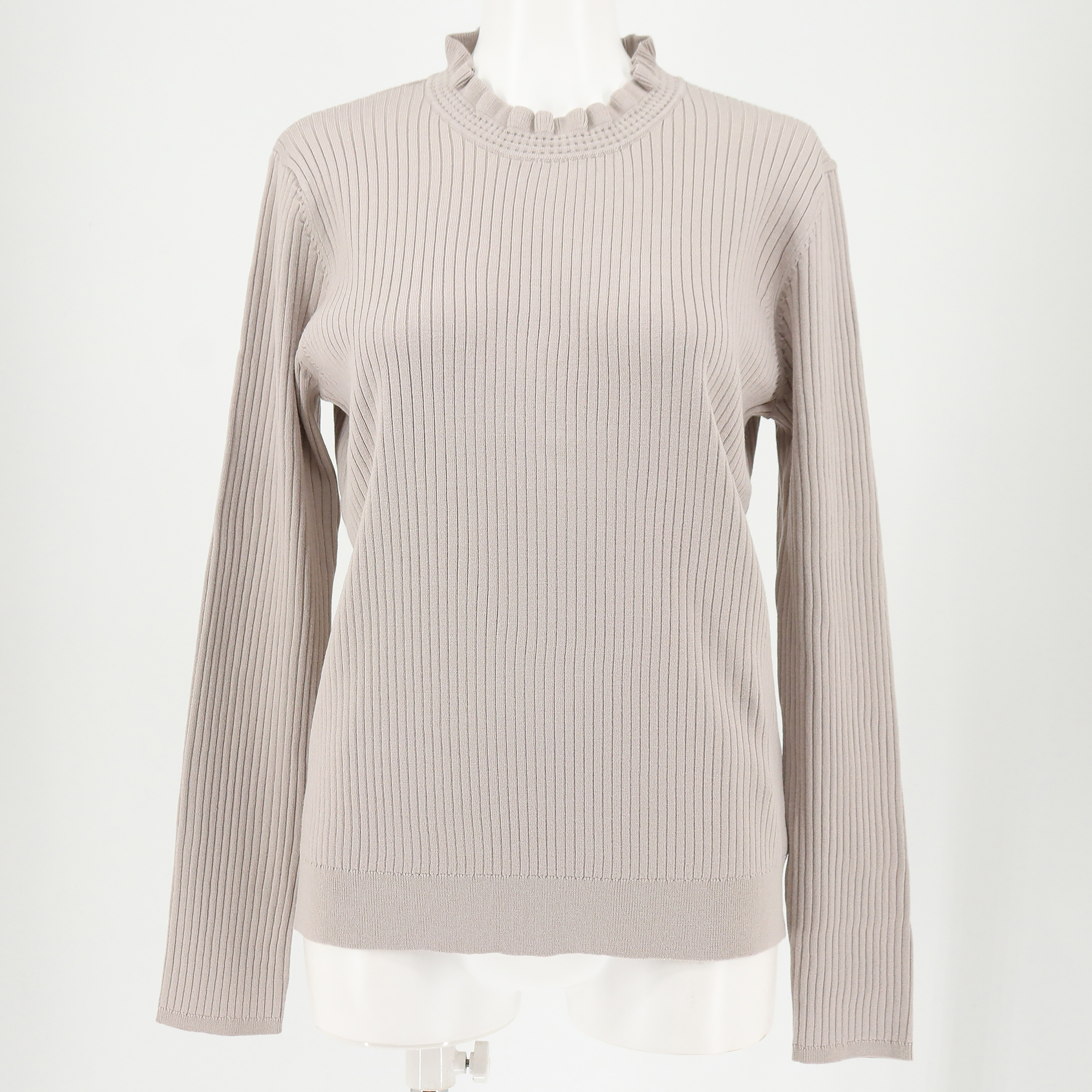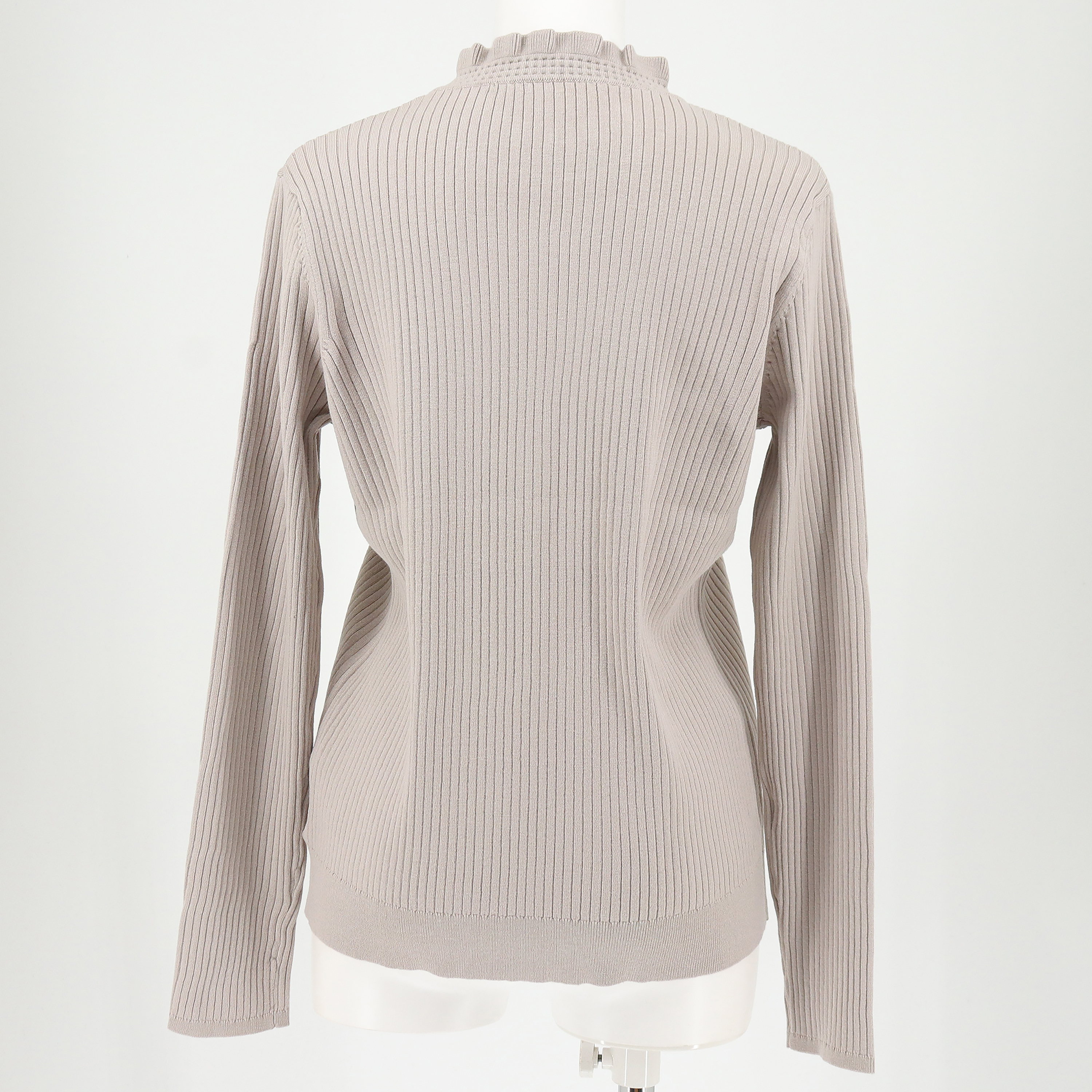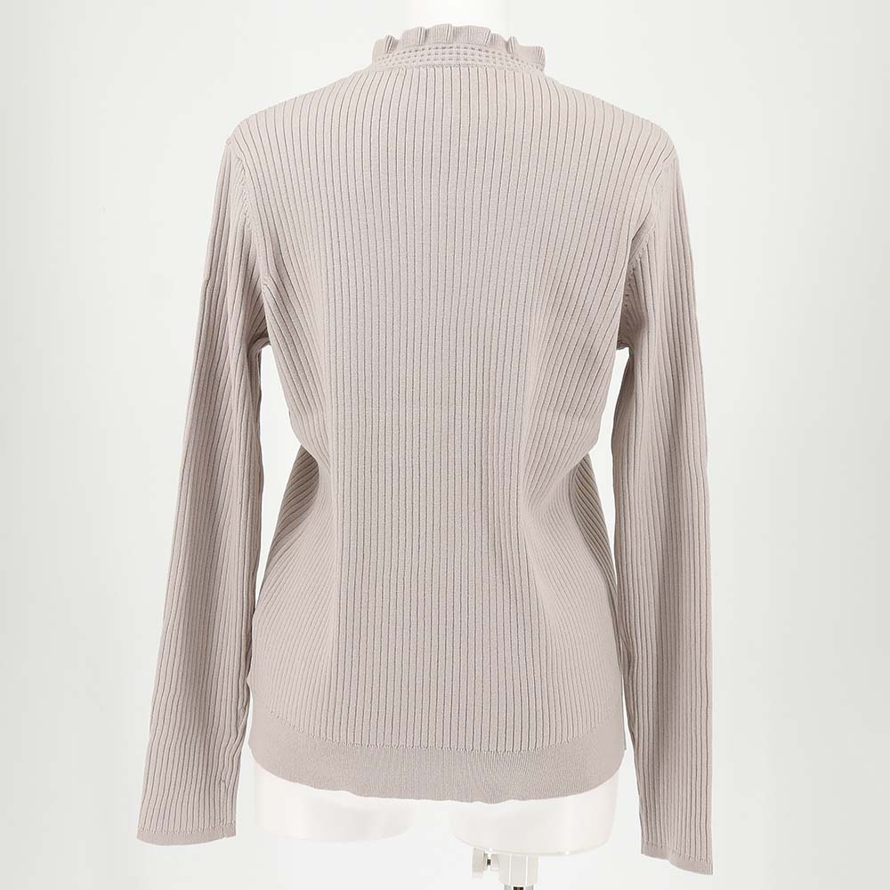 スタンドフリルカラーがポイントのリブニット。
